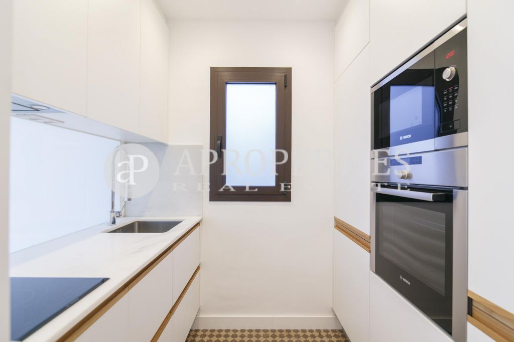 Piso situado en una primera planta real en finca del año 1948 SIN ASCENSOR, en perfecto estado de conservación y la ITE aprobada. La propiedad, de 80m2 construidos, exterior y con orientación noroeste, destaca por su luminosidad. Se ha reformado integralmente con materiales de calidad, combinando elementos originales con un toque industrial con un diseño moderno y actual. Se distribuye en dos amplias habitaciones dobles, ambas exteriores a calle, salón-comedor con cocina abierta y un baño completo. Detalles como una campana extractora realizada por un artesano, parqué de roble, cristales de doble grosor, gres cerámico en el baño, iluminación de Biosca Botey, puertas correderas para aprovechar cada centímetro, isla central con sobre de silestone son algunos de los detalles destacables en sus acabados. No dispone de calefacción y aire acondicionado, pero se pueden instalar fácilmente splits o incluso calefacción de gas natural pues en la finca está instalado. El agua se calienta con un termo de 150L de capacidad apto para una familia de 4 miembros. La cocina se entrega equipada con horno y microondas, campana extractora, inducción y nevera-congelador panelados. No se incluye la lavadora y el lavaplatos (hay espacio destinado a su instalación). La vivienda se encuentra en una calle peatonal transitable solamente para los vecinos en una zona muy tranquila del demandado barrio del Poblesec. Al final de la calle, a escasos metros, se encuentra el Teatre Lliure. La montaña de Montjuic, muy cercana, permite dar largos paseos por una de las mayores zonas verdes de la ciudad. El barrio está lleno de restaurantes y zonas de ocio, así como todos los servicios y comercios.