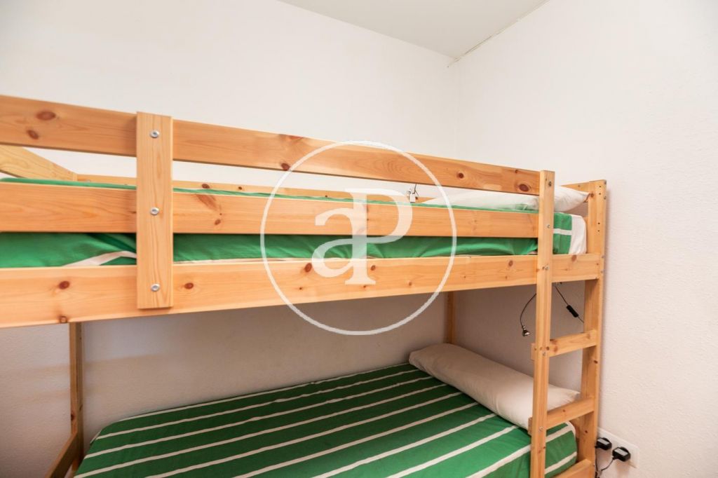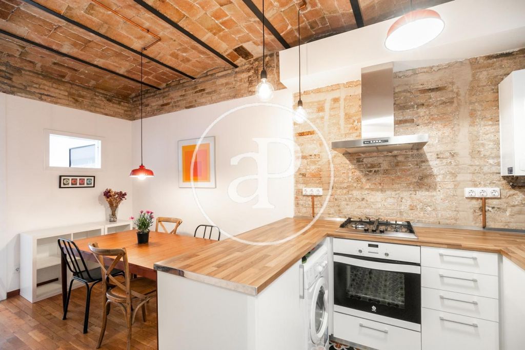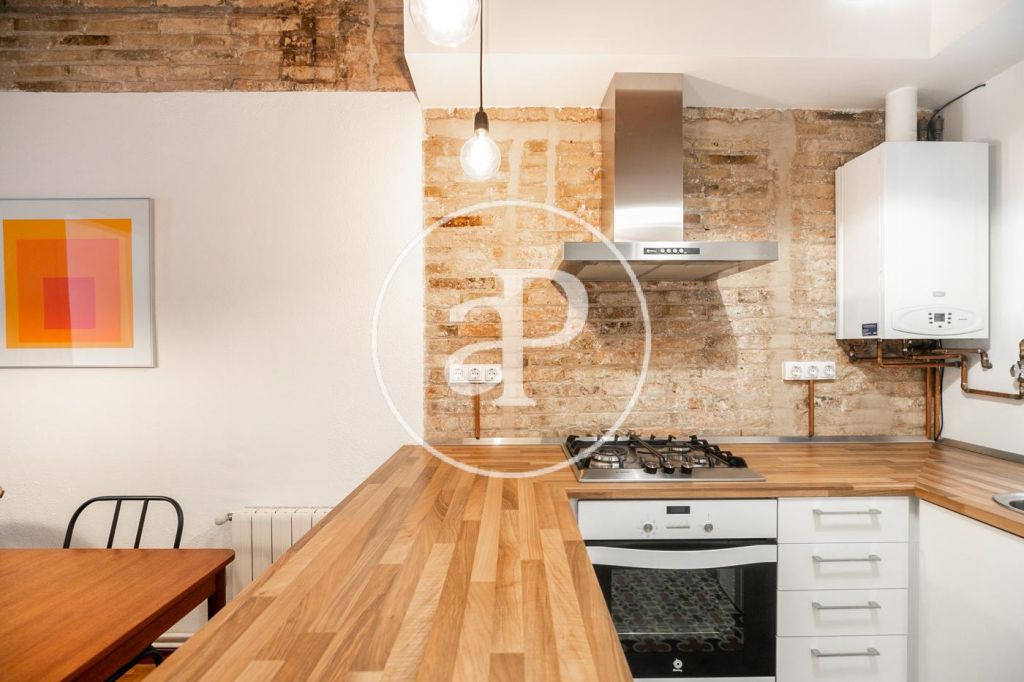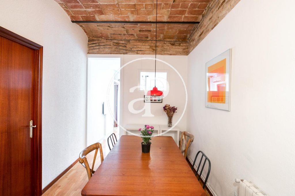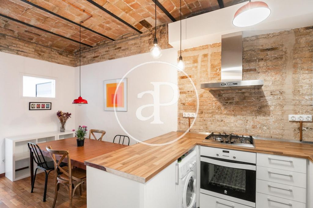 En el atractivo y céntrico barrio de Poble Sec, rodeado de todo tipo de servicios, con diferentes opciones de transporte público y muy cercano a la playa, encontramos este piso totalmente reformado y amueblado de 50m2. Cocina totalmente equipada abierta al bonito comedor con techos de bóveda vista tipo catalana y un salón con un sofá y televisión. Dos habitaciones, una doble y una individual con una litera con dos camas y armarios. Un baño completo. Calefacción por gas, aire acondicionado, suelos de parquet y ascensor. Disponibilidad inmediata.