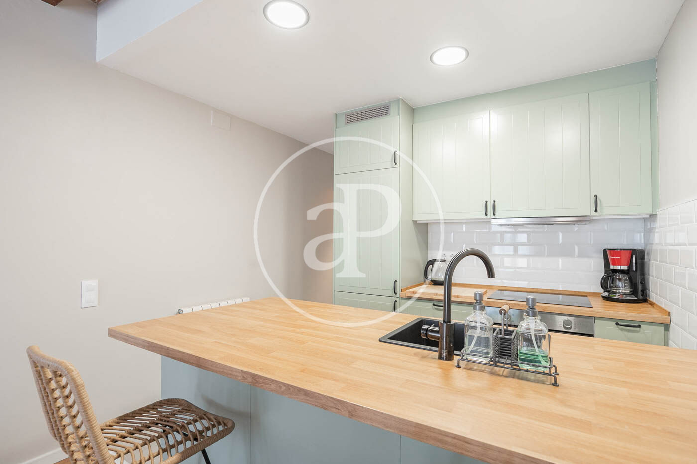 Este moderno y acogedor piso ha sido completamente renovado y amueblado con piezas de diseño para ofrecer el máximo confort. Dispone de dos habitaciones, una de ellas con cama doble y la otra ideal como estudio o espacio de teletrabajo.