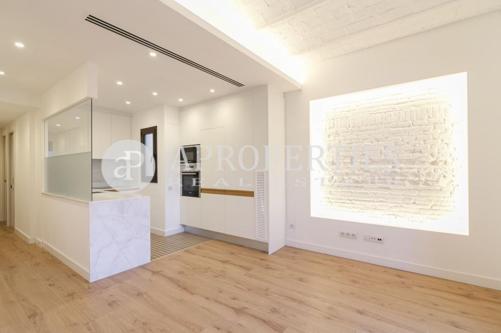 Piso sin amueblar en Paralel,en la calle Roser, junto al famoso Molino y Blai esta zona se encuentra rodeada teatros, conocidos restaurantes y con una reciente reforma de vialidad para todos sus alrededores. El piso cuenta con un amplio salón junto a dos pequeños balcones, la cocina es abierta al salón y está totalmente equipada con todos los electrodomésticos. Tiene dos habitaciones, una doble interior con armarios empotrados y otra individual interior con armario empotrado, un baño completo que cuenta con placa de ducha. Aire acondicionado y calefacción por conductos.La finca tiene ascensor y la finca acaba de ser reformada totalmente tanto por dentro como por fuera, todo a estrenar.