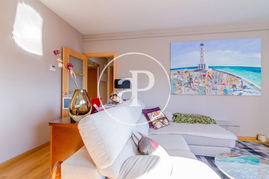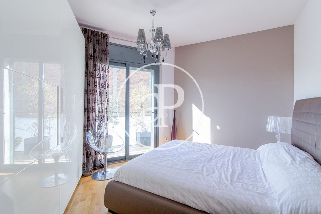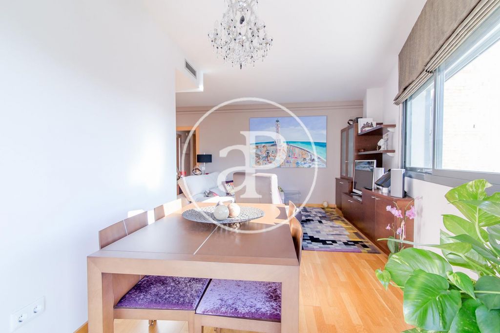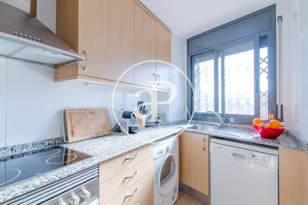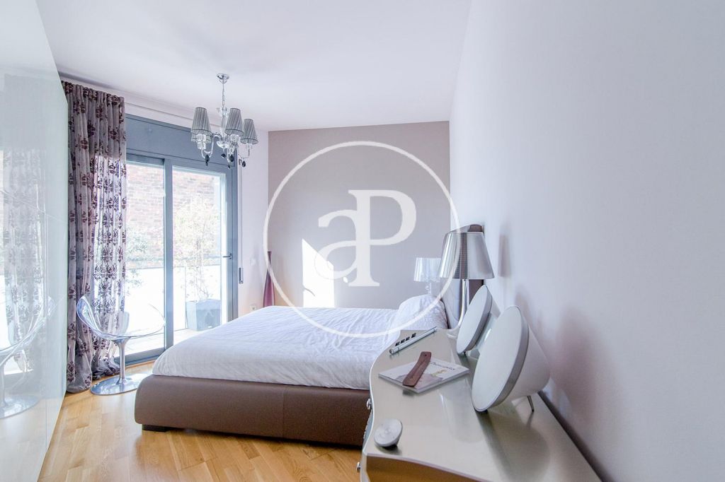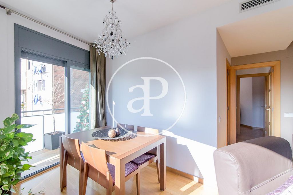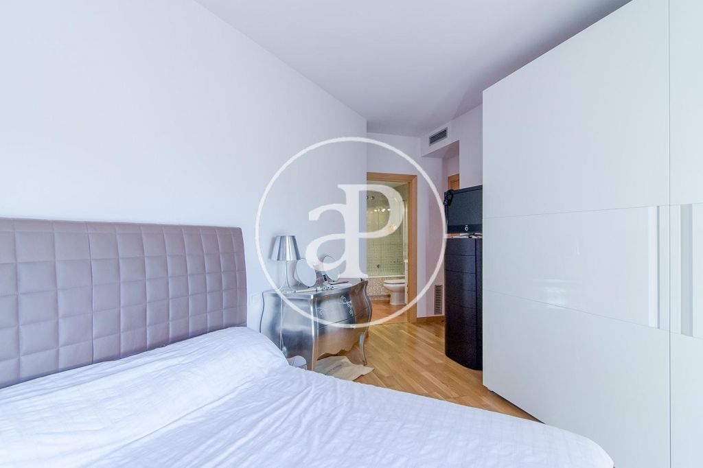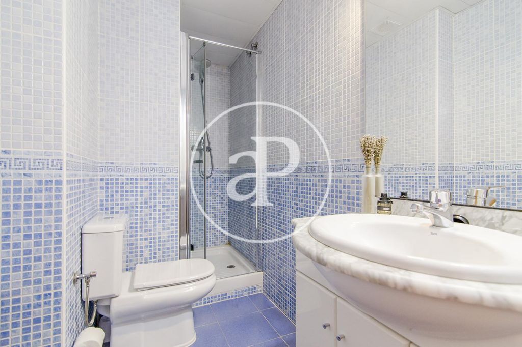 Magnífico piso/ático de alto standing en alquiler situado en la última planta de una finca semi-nueva con ascensor. El apartamento se encuentra en una zona muy céntrica a tan solo unos pasos de Plaza España, el centro comercial Las Arenas y con excelentes comunicaciones con el transporte público (metro, bus, Renfe). El piso orientado a tres vientos goza de magnifica luz natural durante todo el día en todas las estancias y de unas impresionantes vistas a Montjuic. La vivienda totalmente reformada consta de aproximadamente 90m2 distribuidos en un amplio salón-comedor, cocina independiente totalmente equipada, una habitación office, una habitación individual, un dormitorio doble y dos baños completos (uno de ellos en suite). Consta además de suelos de parqué, aire acondicionado y calefacción por conducto y un largo balcón que rodea toda la vivienda. La finca posee una gran terraza de uso comunitario.