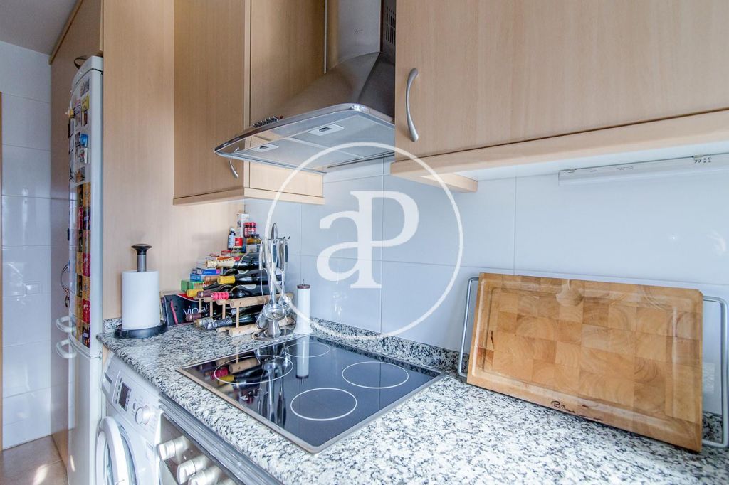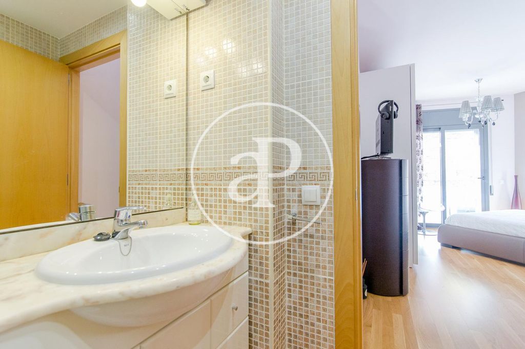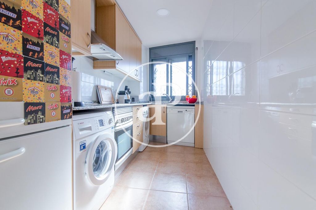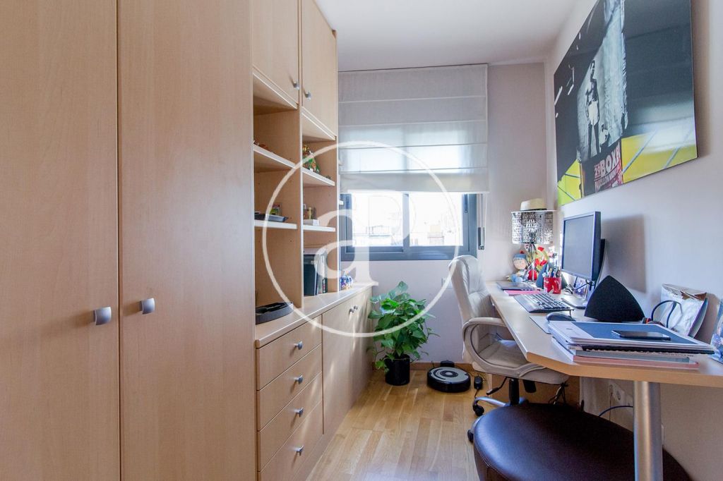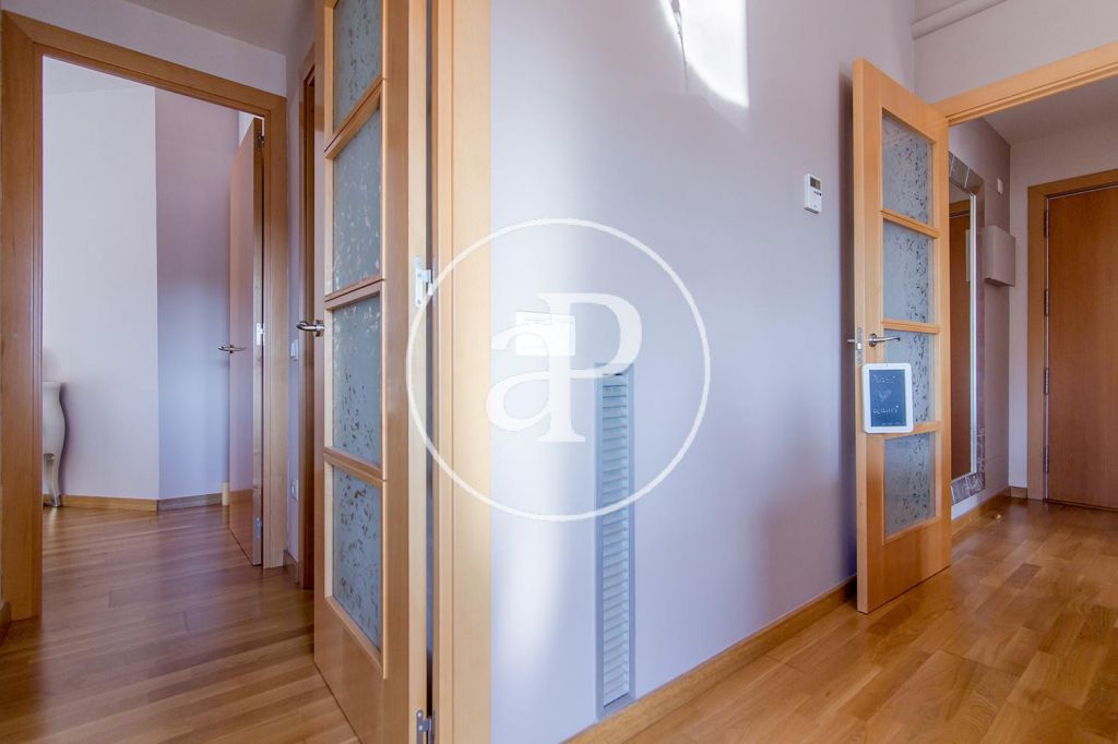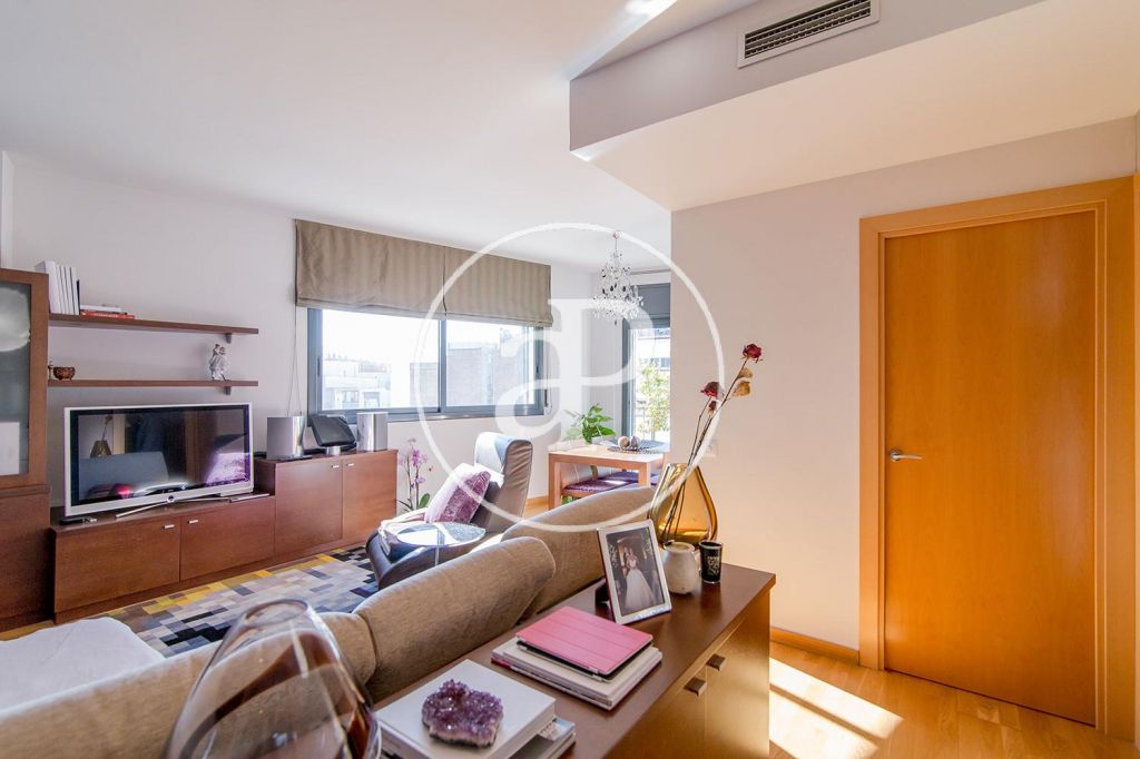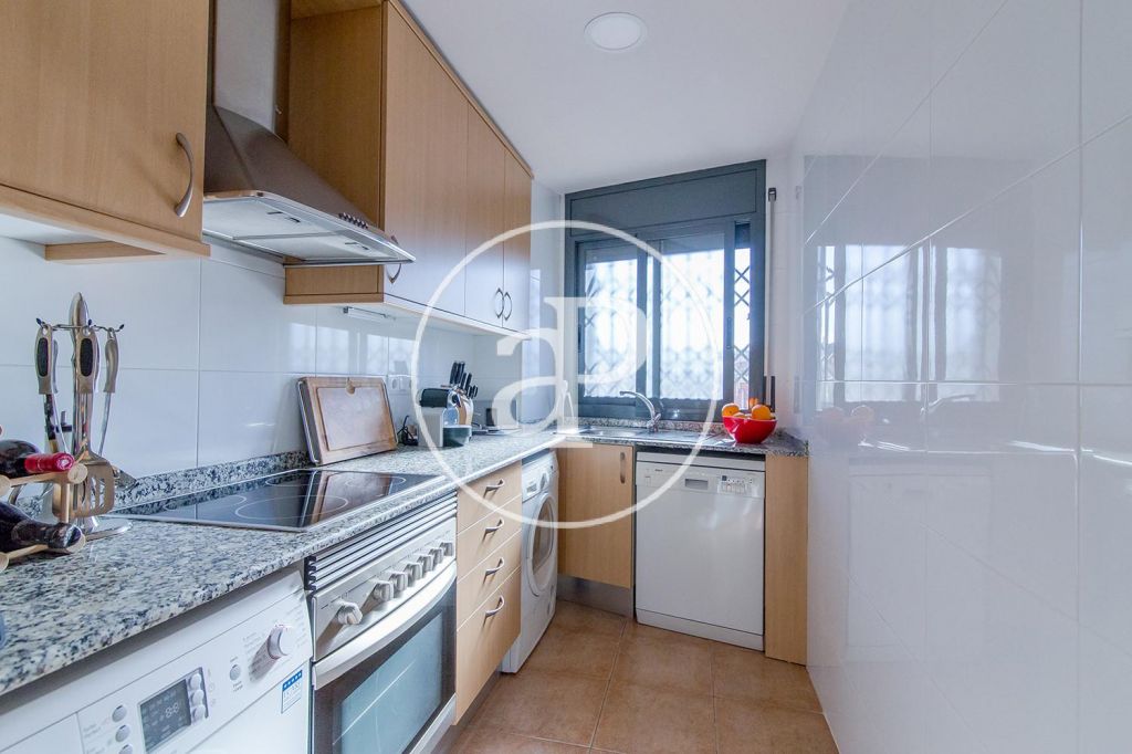 Magnífico piso/ático de alto standing en alquiler situado en la última planta de una finca semi-nueva con ascensor. El apartamento se encuentra en una zona muy céntrica a tan solo unos pasos de Plaza España, el centro comercial Las Arenas y con excelentes comunicaciones con el transporte público (metro, bus, Renfe). El piso orientado a tres vientos goza de magnifica luz natural durante todo el día en todas las estancias y de unas impresionantes vistas a Montjuic. La vivienda totalmente reformada consta de aproximadamente 90m2 distribuidos en un amplio salón-comedor, cocina independiente totalmente equipada, una habitación office, una habitación individual, un dormitorio doble y dos baños completos (uno de ellos en suite). Consta además de suelos de parqué, aire acondicionado y calefacción por conducto y un largo balcón que rodea toda la vivienda. La finca posee una gran terraza de uso comunitario.