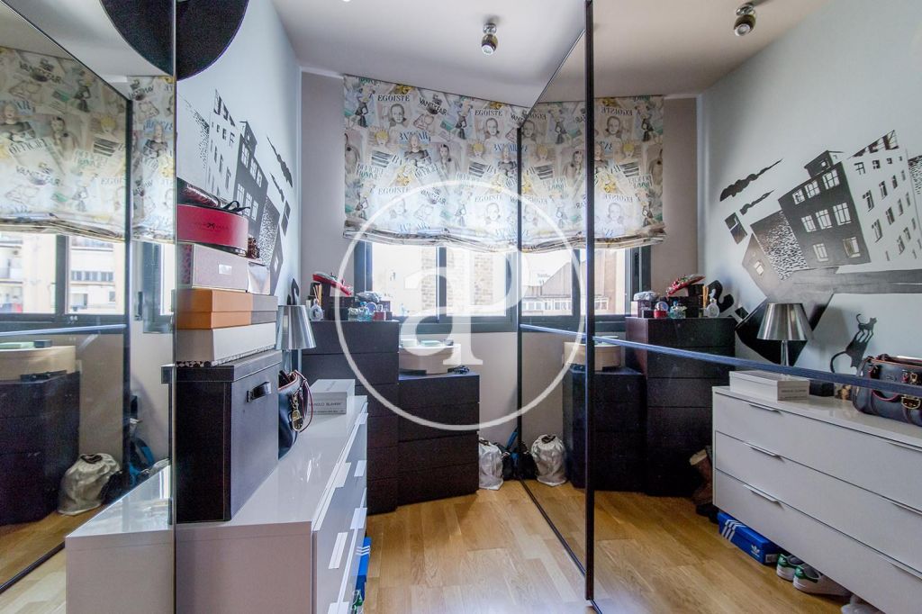 Este exclusivo ático está ubicado en el Passatge de la Pau, resultado de una intervención urbanística de la segunda mitad del siglo XIX en el barrio gótico de Ciutat Vella de Barcelona y una calle protegida como bien cultural de interés local.Se encuentra en un edificio del 1875 que fue rehabilitado por completo conservando elementos originales que destaca por su majestuosa entrada. El ático tiene un espacio abierto de 160m². La zona de día es diáfana, se compone de tres espacios, una cocina abierta totalmente equipada con electrodomésticos de alta gama, integrando la zona de aguas, un amplio salón-comedor que tiene acceso a  la preciosa terraza de estilo chill out a pie del salón de 52m² y zona de lectura. La zona de noche está abierta al patio de manzana aportando mucha luz, intimidad y tranquilidad. Consta de una master suite con vestidor, baño completo de ducha y bañera, otra habitación doble en suite con baño completo con armario empotrado  dos aseos de cortesía. El proyecto de reforma fue pensado para conservar elementos originales de la vivienda tales como techo de volta catalana, ventanas originales. Calefacción individual de suelo radiante, aire acondicionado por conducto, ascensor y trastero.La vivienda es ideal para toda aquella persona que desee y aprecie vivir en un entorno histórico, rodeado de lugares culturales y gastronómicos.