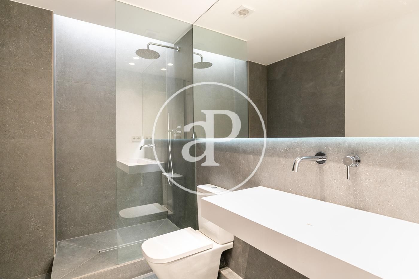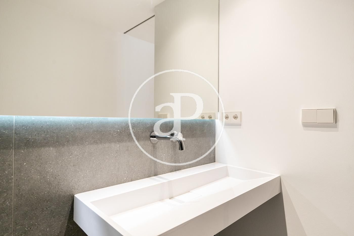 La cocina se entrega equipada con horno y microondas, campana extractora, inducción y nevera-congelador panelados. No se incluye la lavadora y el lavaplatos (hay espacio destinado a su instalación).