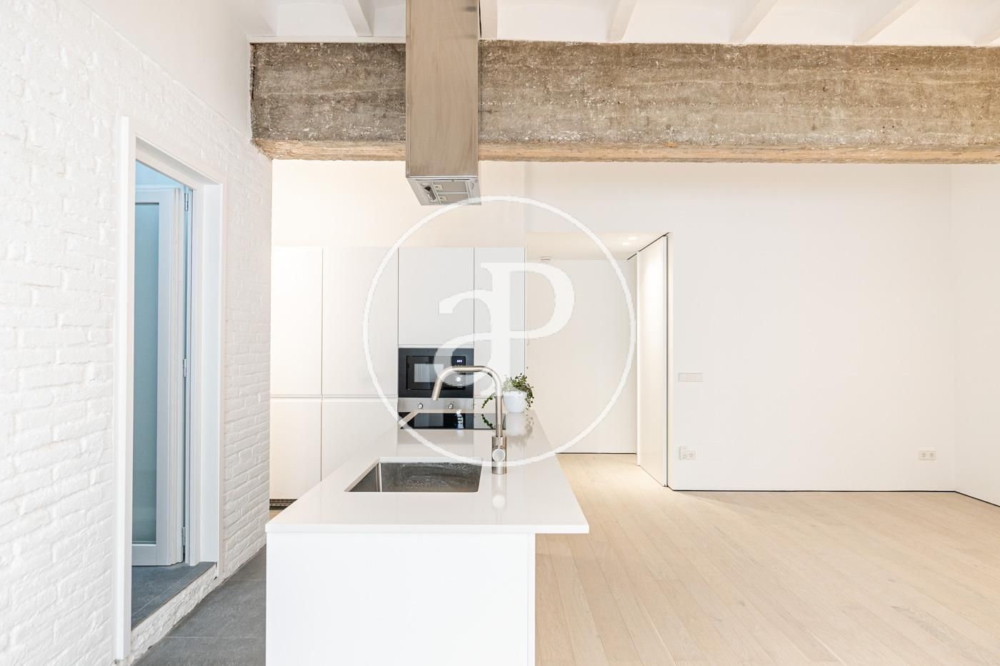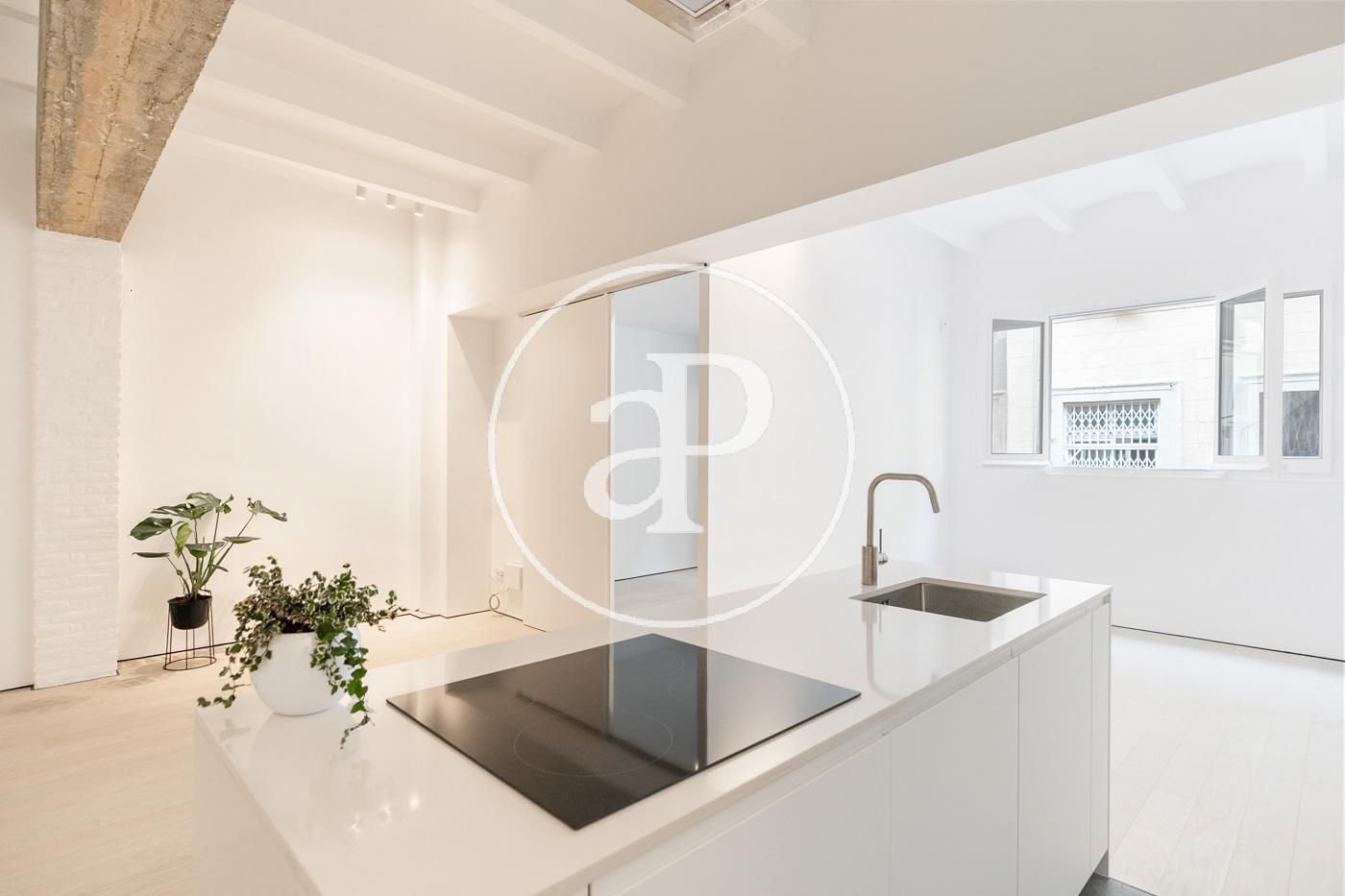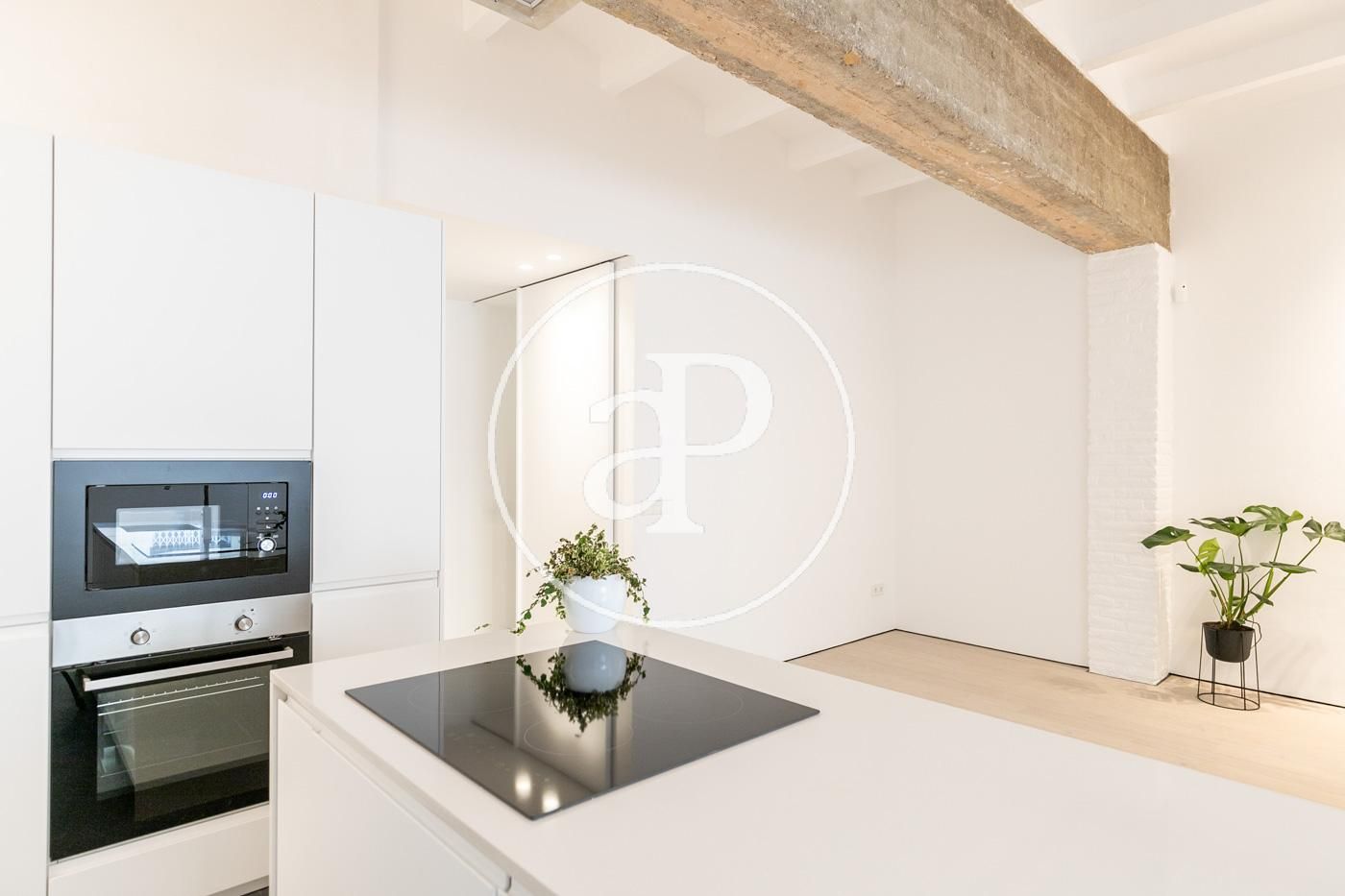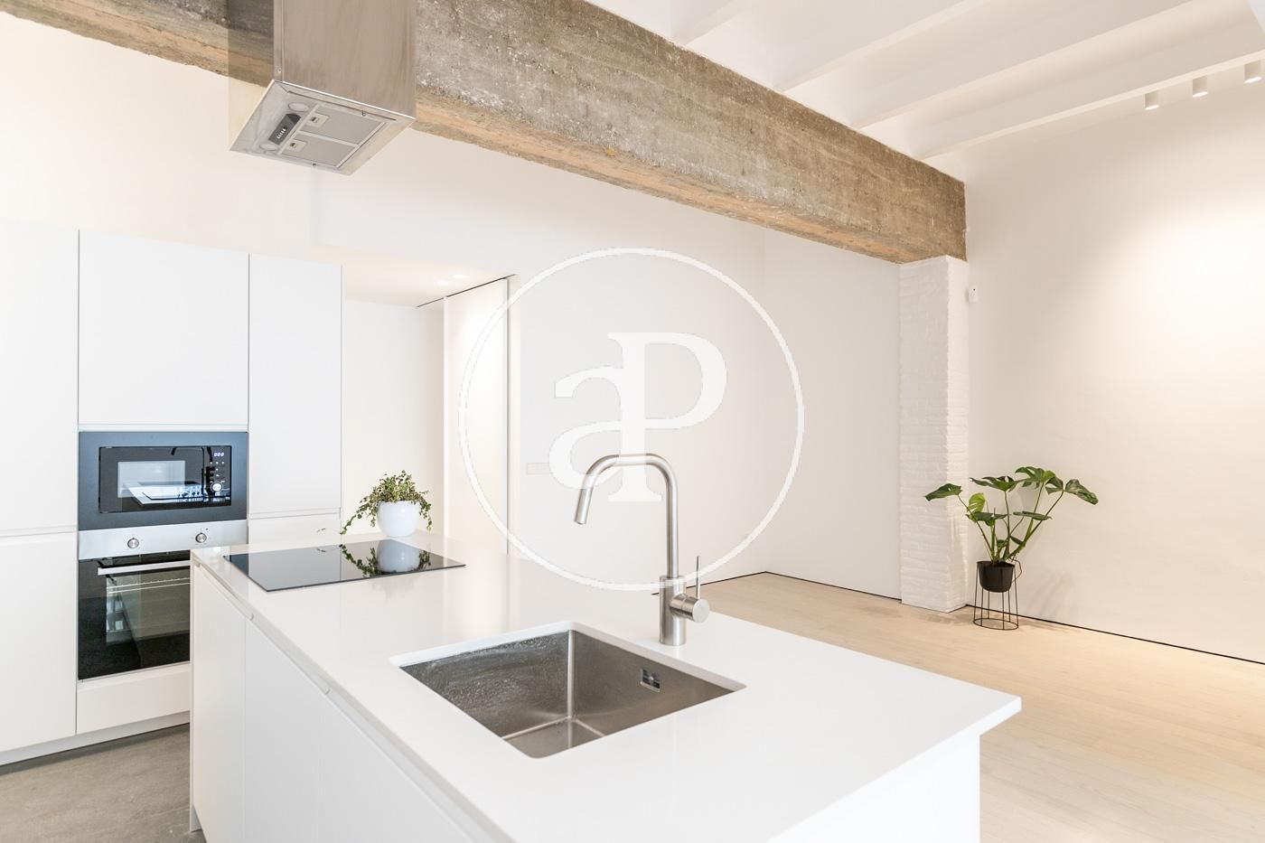 La propiedad, de 80m2 construidos, exterior y con orientación noroeste, destaca por su luminosidad. Se ha reformado integralmente con materiales de calidad, combinando elementos originales con un toque industrial con un diseño moderno y actual.