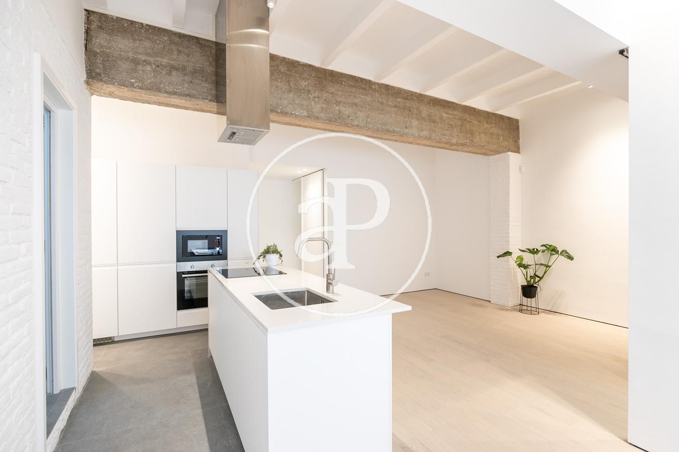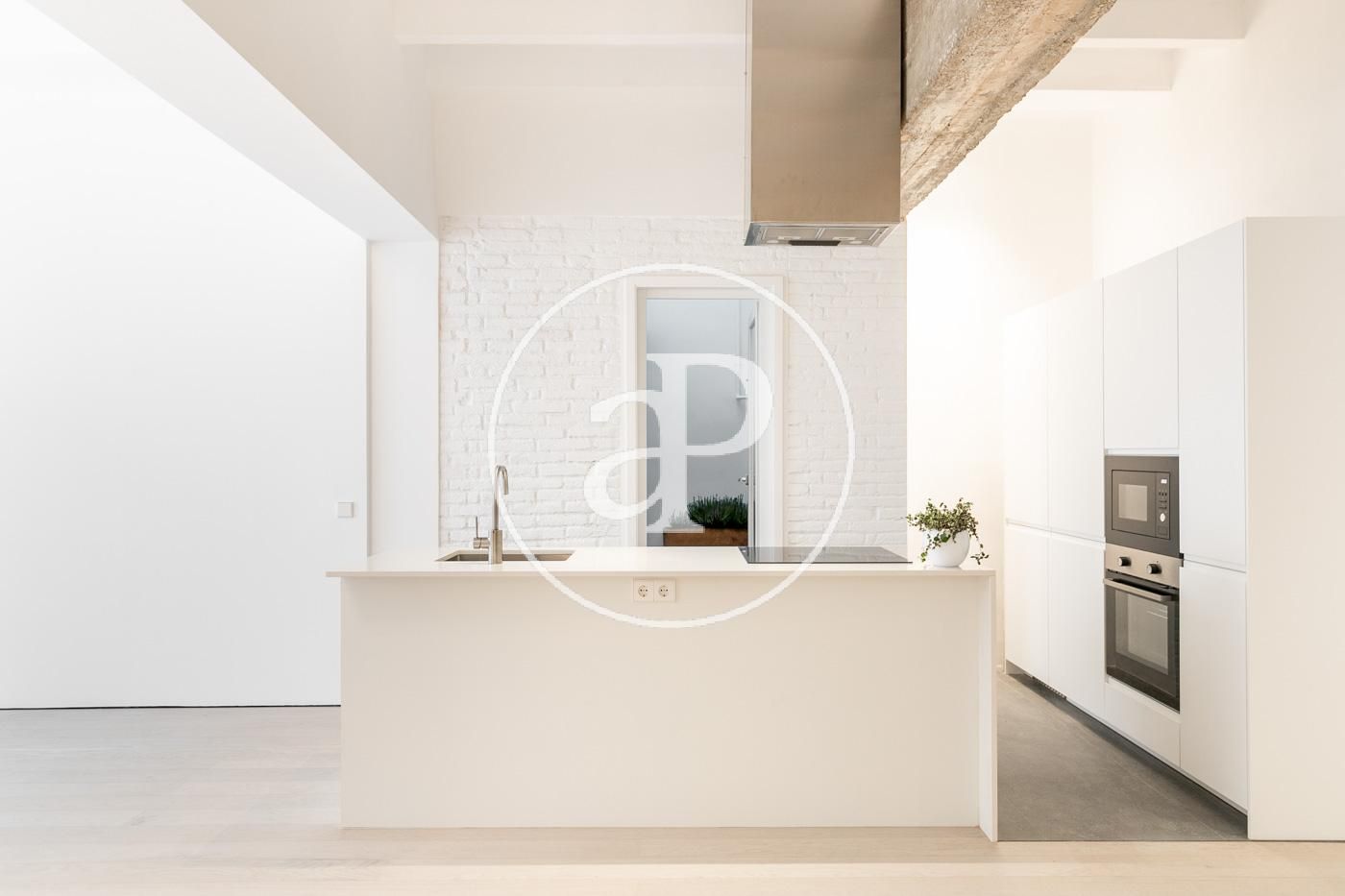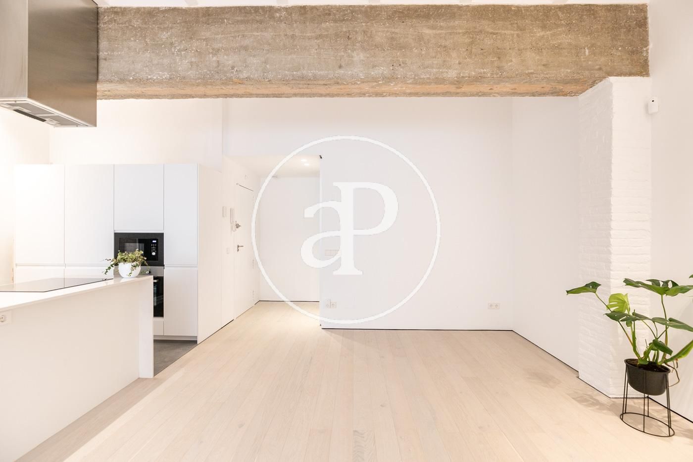 La propiedad, de 80m2 construidos, exterior y con orientación noroeste, destaca por su luminosidad. Se ha reformado integralmente con materiales de calidad, combinando elementos originales con un toque industrial con un diseño moderno y actual.