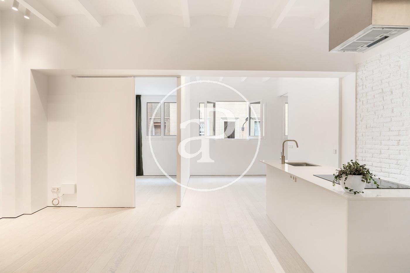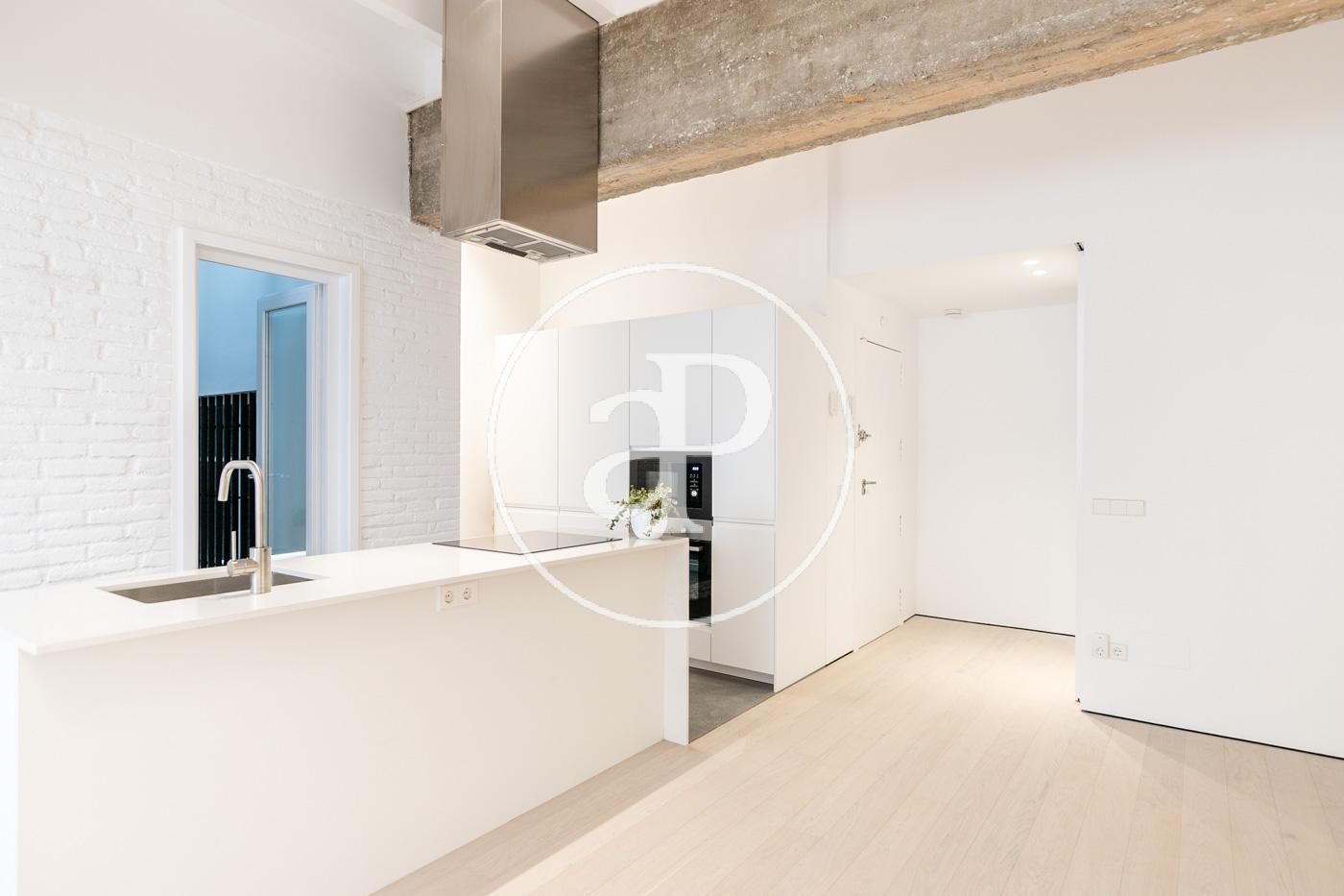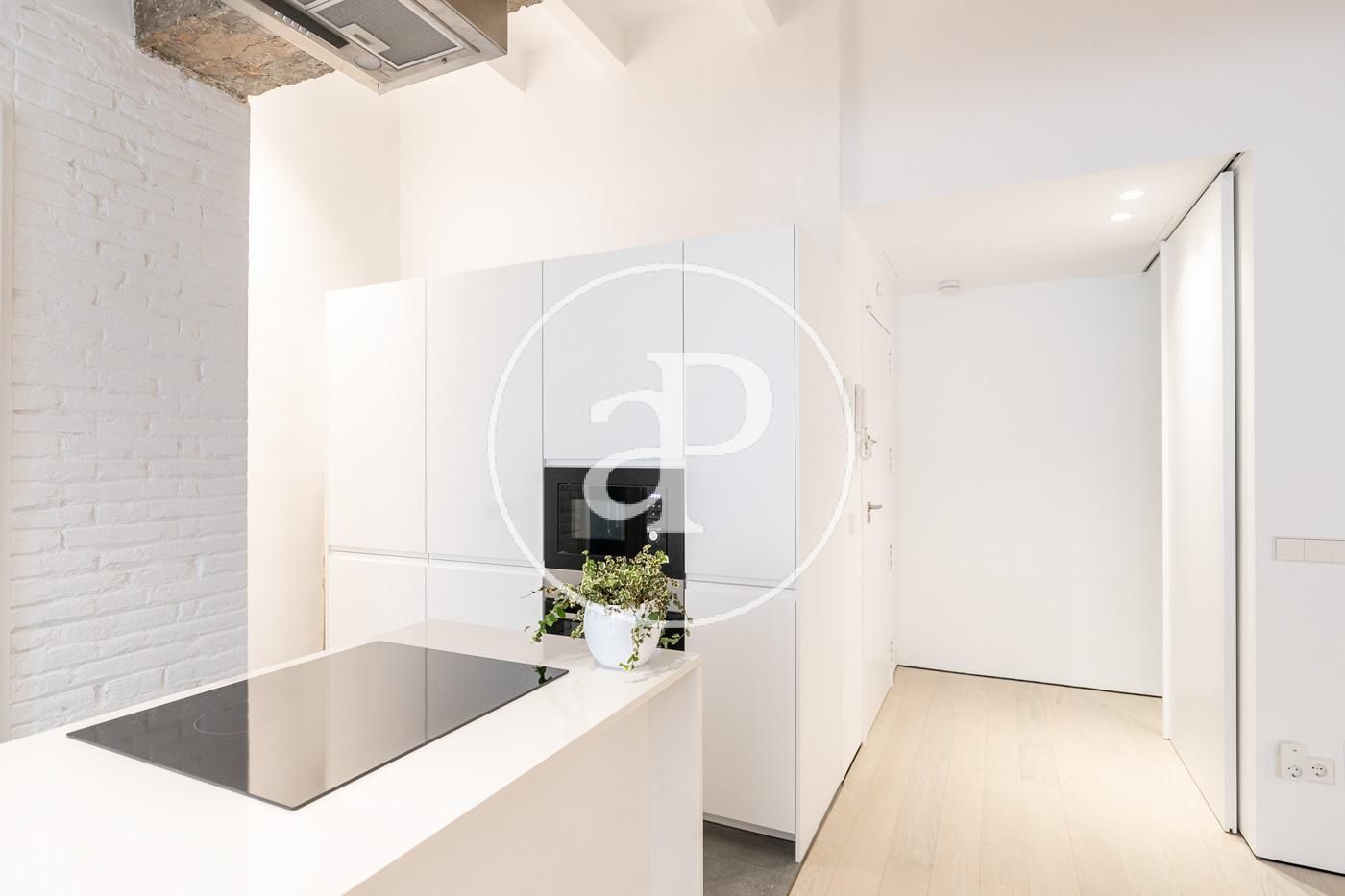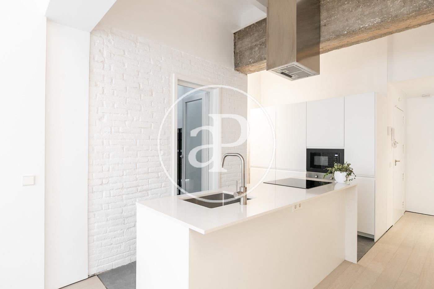 La propiedad, de 80m2 construidos, exterior y con orientación noroeste, destaca por su luminosidad. Se ha reformado integralmente con materiales de calidad, combinando elementos originales con un toque industrial con un diseño moderno y actual.