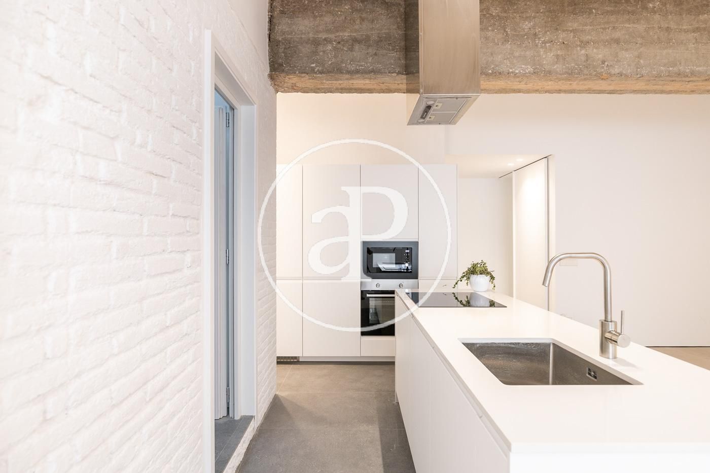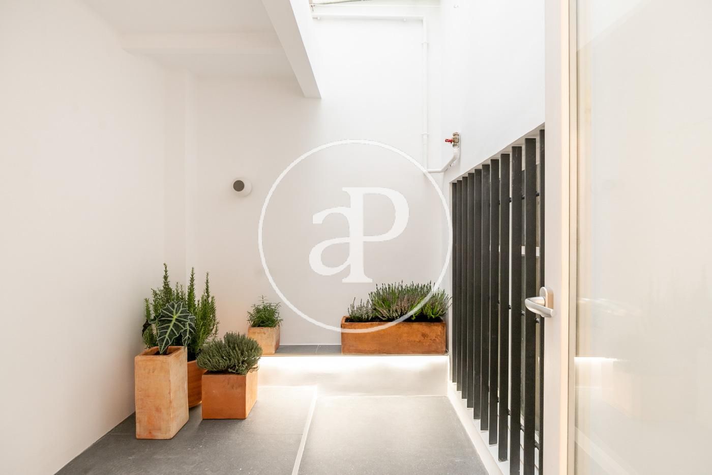 La vivienda se encuentra en una calle peatonal transitable solamente para los vecinos en una zona muy tranquila del demandado barrio del Poblesec. Al final de la calle, a escasos metros, se encuentra el Teatre Lliure. La montaña de Montjuic, muy cercana, permite dar largos paseos por una de las mayores zonas verdes de la ciudad. El barrio está lleno de restaurantes y zonas de ocio, así como todos los servicios y comercios.