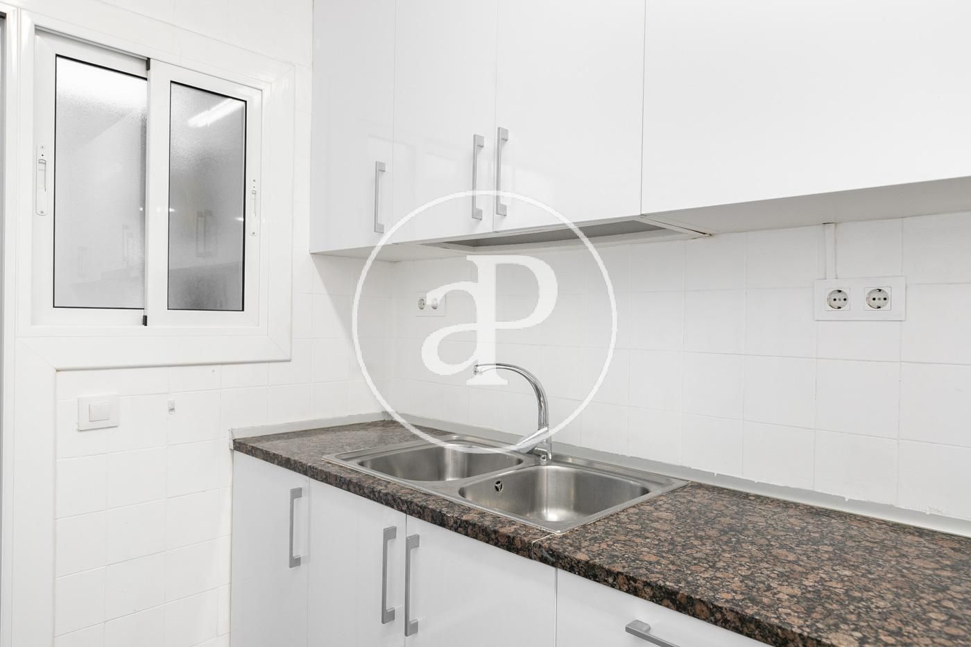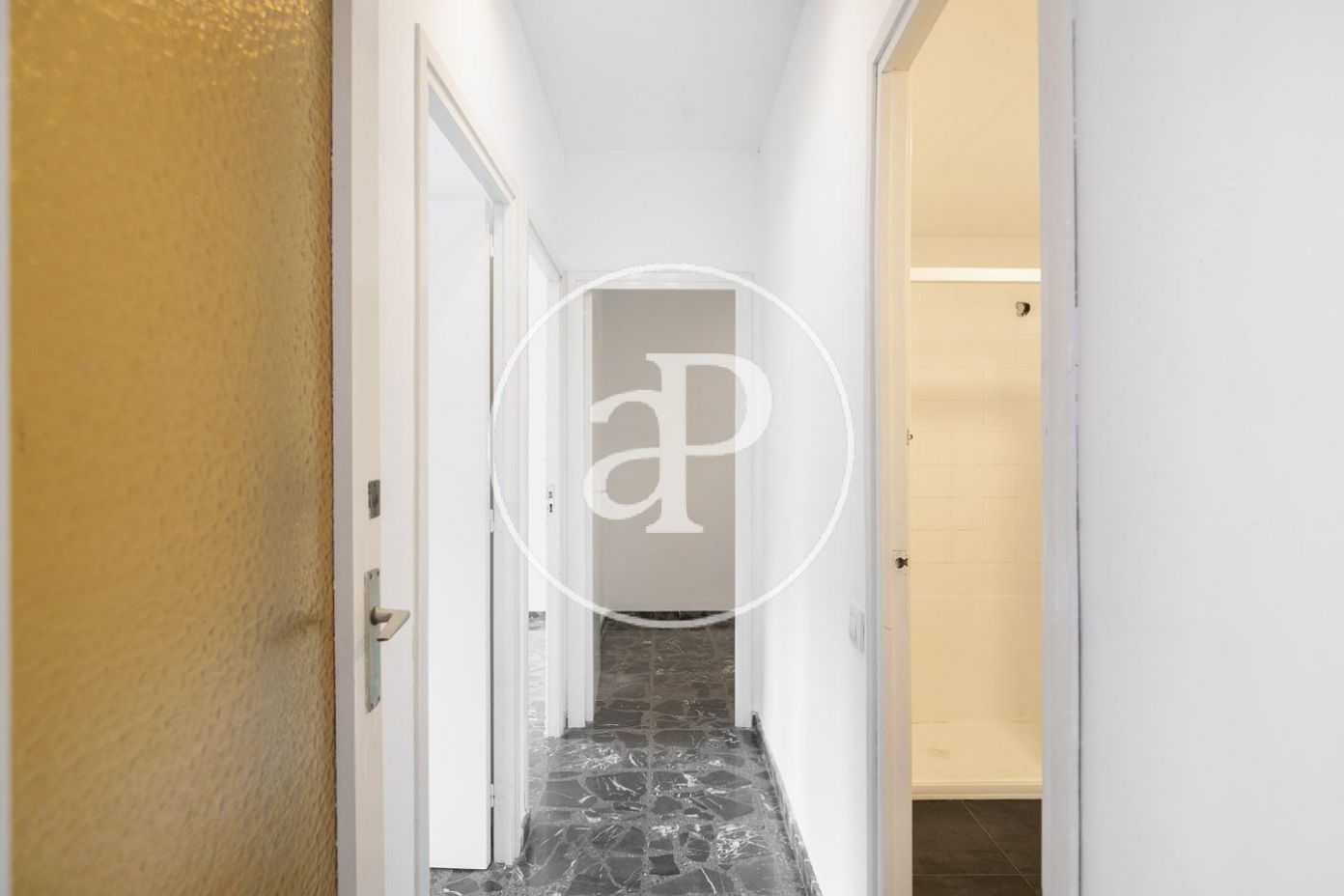 En la mejor zona de Poble Sec, a unos pasos de la Avenida del Paralelo y su parada de metro encontramos este bonito piso de 97m2 construidos según plano, contabilizando 8m2 en sus dos balcones.