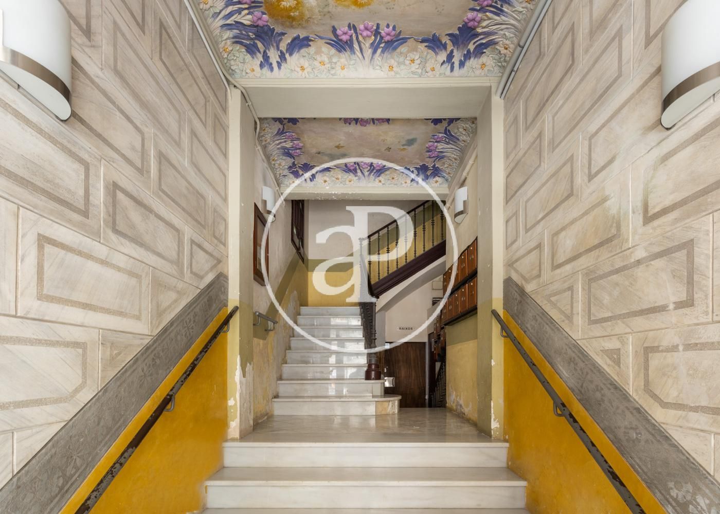 El piso se encuentra en una finca regia esquinera bien conservada del 1905, es un cuarto real de altura y por esto dispone de mucha luz natural y sol directo.