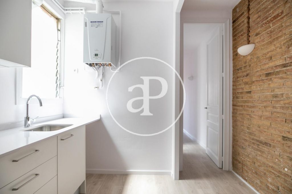 El piso con una superficie de unos 79 m2 está recien reformado a estrenar, con mucho gusto combinando paredes blancas y de ladrillo visto .