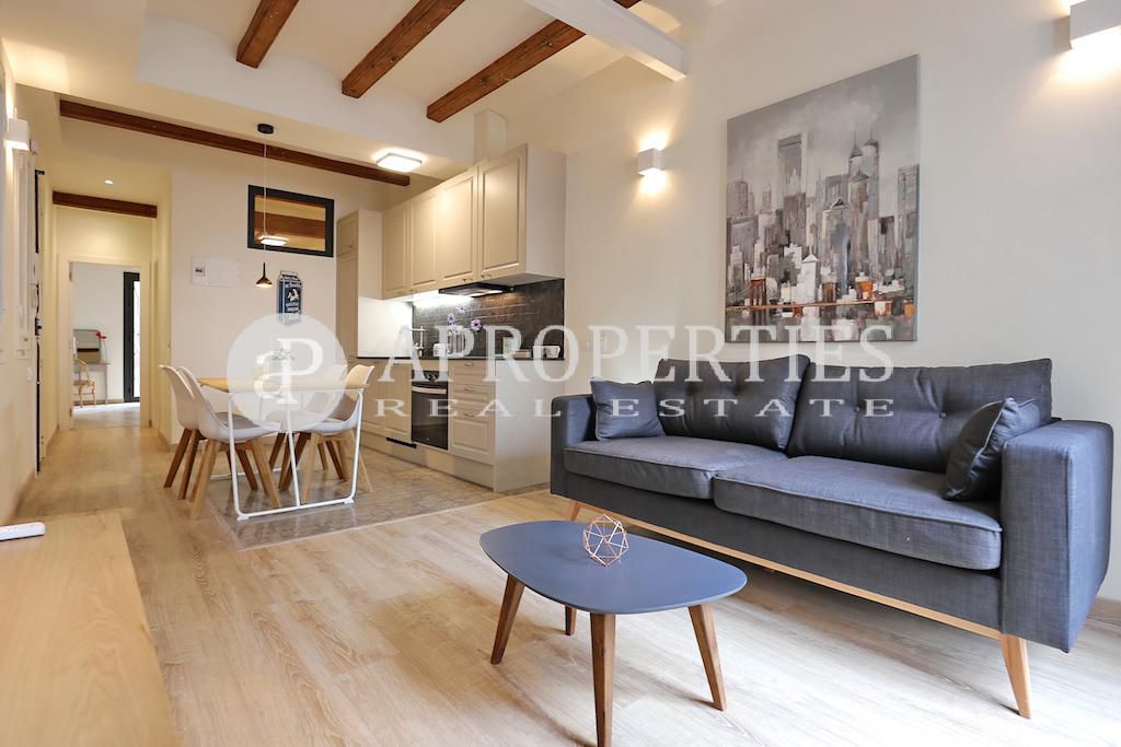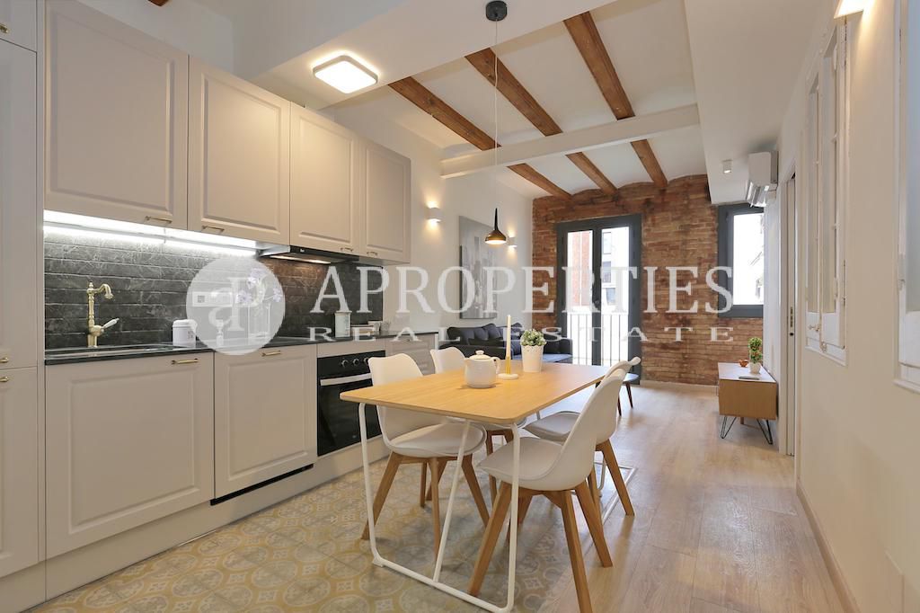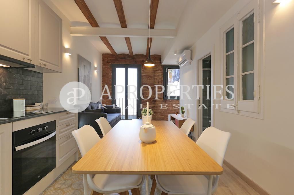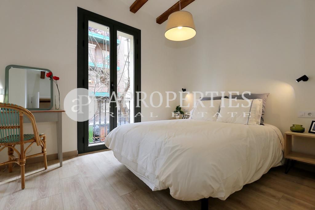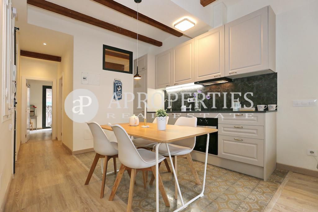 Ubicado en el centro del bonito y tranquilo barrio del Poble Sec, en una calle poco transitada, encontramos este fantástico piso de 60m2 aproximadamente. Se le ha hecho una excepcional reforma, a estrenar, que conserva todos los detalles característicos de la arquitectura local: techos con vigas de madera y volta catalana, cerramientos en madera y suelos hidráulicos excelentemente restaurados. Cuenta con un salón-comedor y una cocina americana, dos dormitorios dobles y un baño completo. Bonita finca con ascensor.