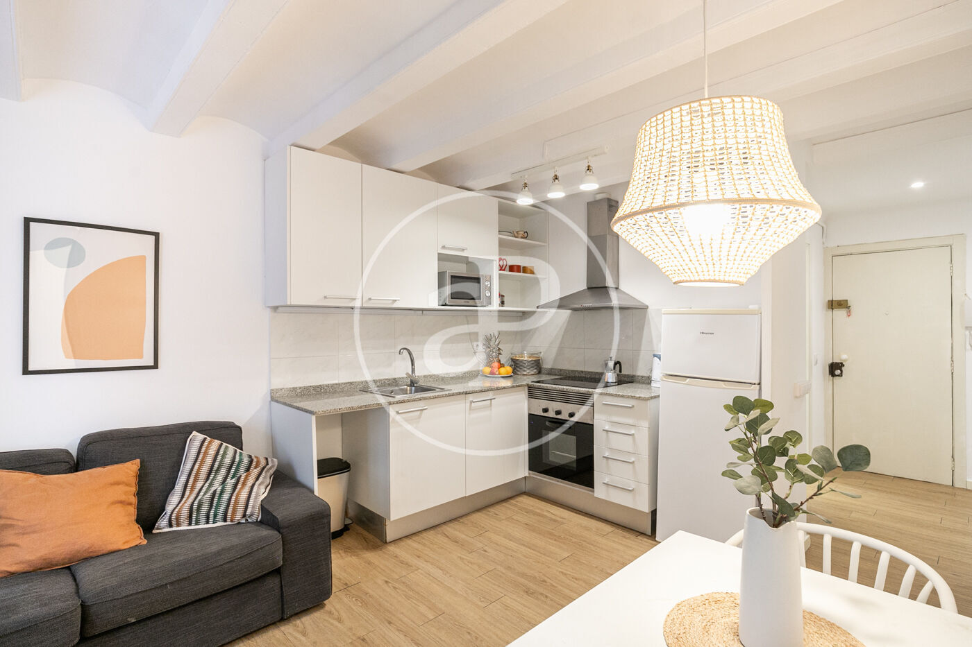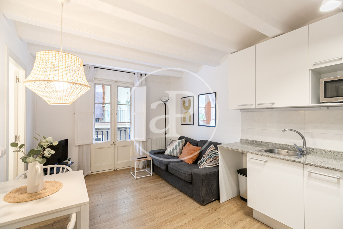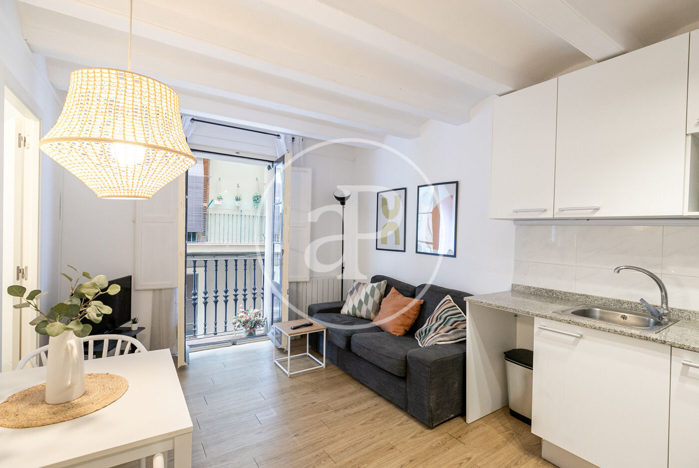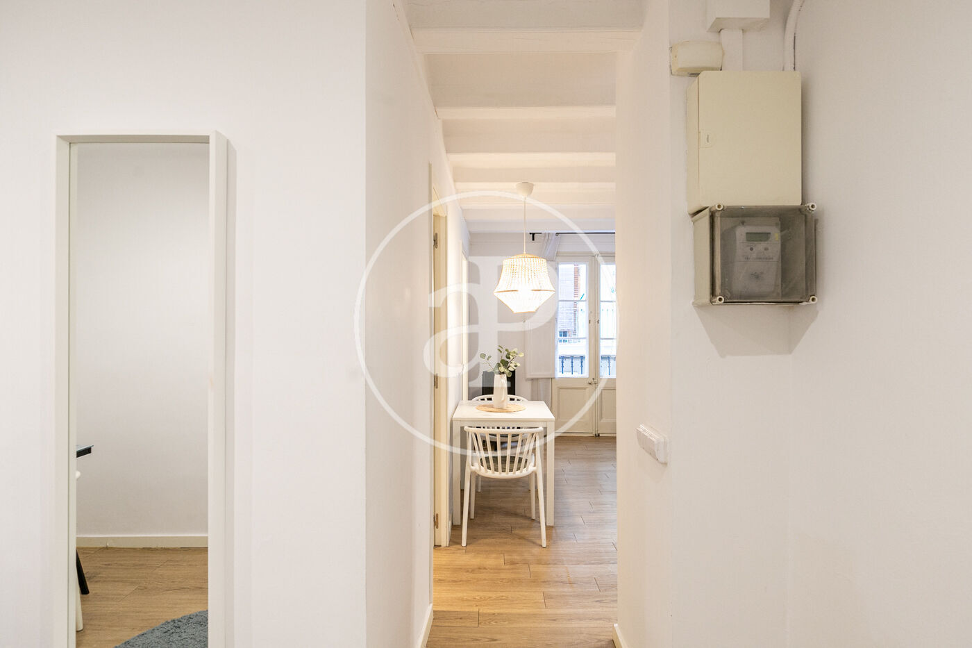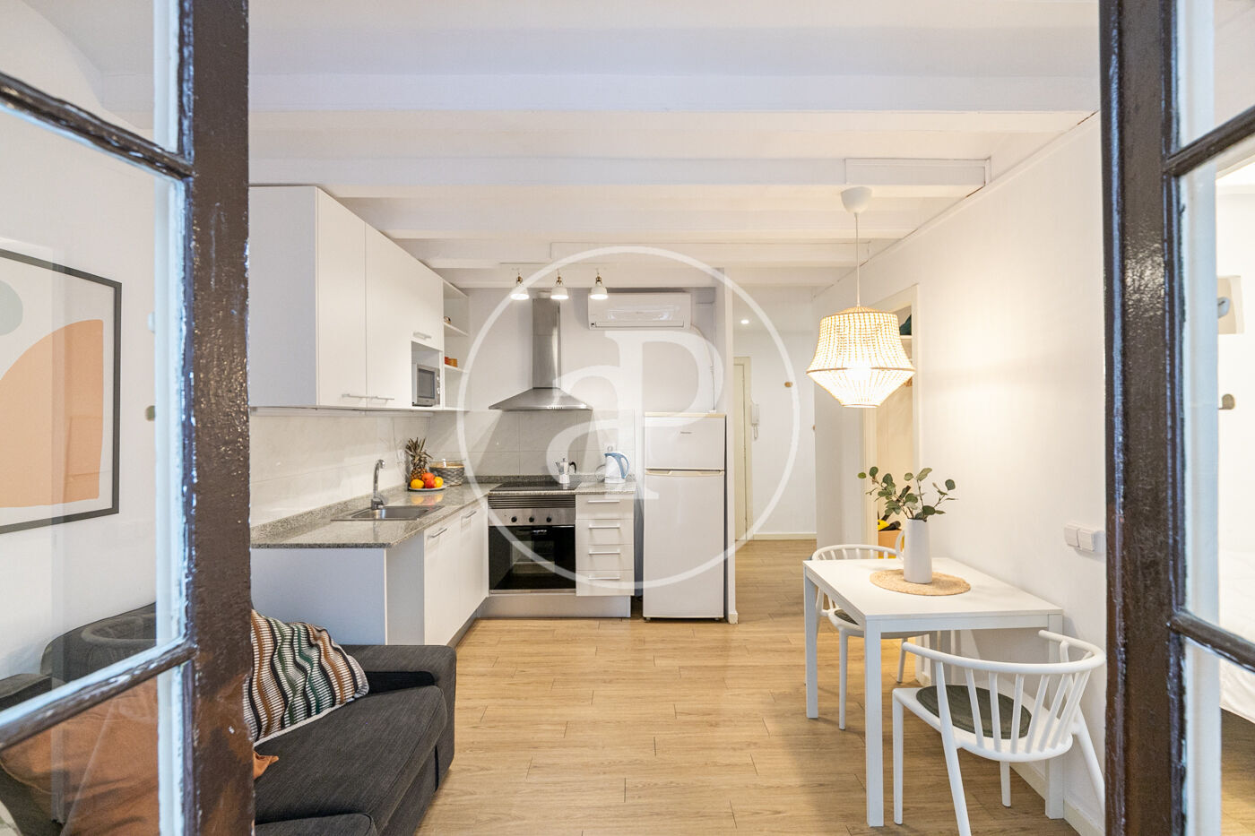 Ubicado a pocos pasos del renombrado Mercat de las Flors y del Institut del Teatre de Barcelona, en la parte más tranquila del histórico barrio del Poble Sec, en una finca clásica en muy buenas condiciones SIN ASCENSOR, encontramos este encantador piso, reformado y completamente amueblado, orientación sur-este.
