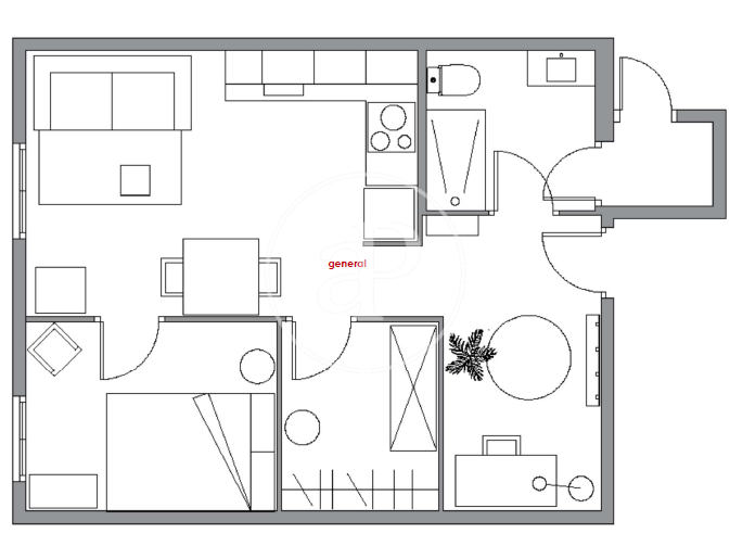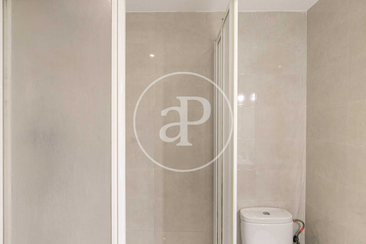 La superficie de 43m2 se distribuye en un amplio recibidor estudio, una cómoda sala de estar con cocina abierta y un amplio dormitorio doble, ambos con un balcón que da a la calle, una habitación individual sin ventana y un amplio baño con zona de aguas.