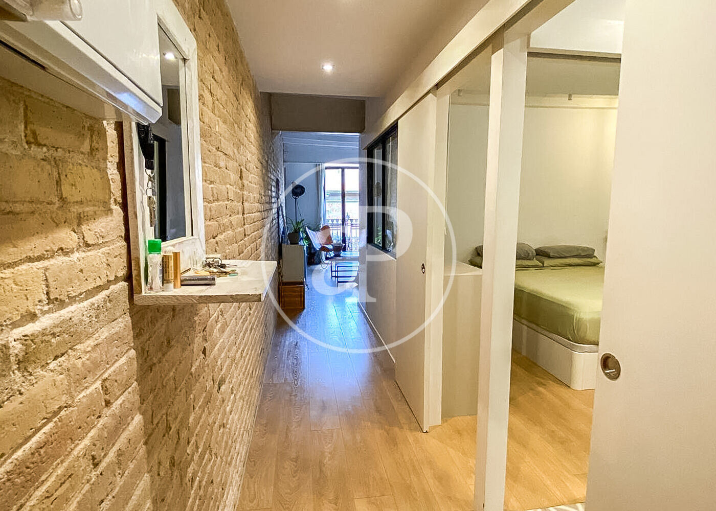 PISO DE UNA HABITACION ESTILO LOFT RECIEN REFORMADO Piso de una habitacion estilo loft recien reformado en pleno centro de la ciudad, a pocos metros del paseo marítimo y del paseo del Borne. Rodeado de todo tipo de comercios, centros de ocio, medios de transporte y puntos de interés turístico y cultural, encontramos este exclusivo piso reformado con un estilo moderno y un toque industrial, que juegan con la recuperación de los elementos originales de la vivienda. Al entrar, el recibidor da acceso a un pasillo que comunica con la sala principal con una cocina estilo americana y equipada con: cocina y horno eléctricos, nevera y lavavajillas. La sala posee un balcón galería con vistas a un jardín interior. Continuando por el pasillo hacia la parte de la calle trasera tenemos la habitación doble con ventana y, hacia la izquierda de esta se encontramos el baño completo con plato de ducha y una pequeña zona de coladuria con su lavadora. Toda la vivienda posee un mix de diferentes suelos entre ellos: de madera, gres e hidráulicos originales recuperados, paredes blancas y techos tradicionales de vigas de madera, puertas de época recuperadas, radiadores eléctricos en todas las zonas y ventiladores de techo. Los gastos de comunidad, Wifi e IBI están incluidos en el precio. Disponible a partir del 3 de diciembre de 2025, solo para larga estancia. ¿Te imaginas viviendo aquí?