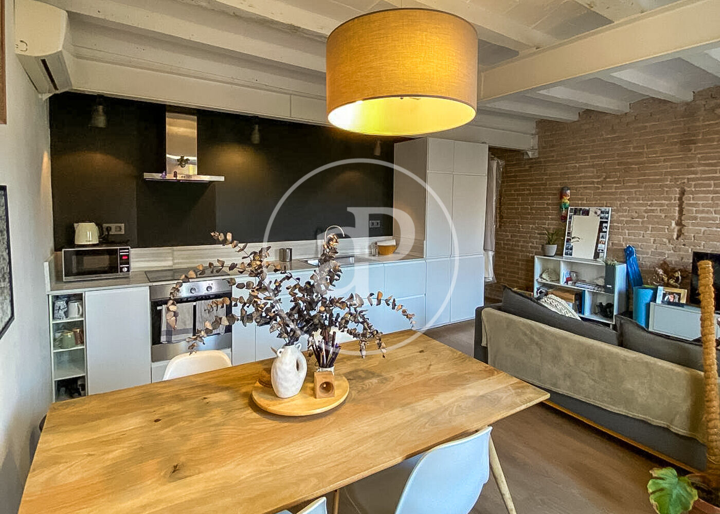 La vivienda, totalmente equipada y amueblada, cuenta con instalaciones renovadas, aire acondicionado, así como carpintería exterior de aluminio y doble cristal, garantizando un alto nivel de confort y eficiencia. Con sus techos de vigas de madera y voltes catalanas vistas, y muros de laderillos vistos y suelos de parquet esta vivienda ofrecer a quien la habita espacios de vida confortables y acogedores en una ubicación privilegiada.