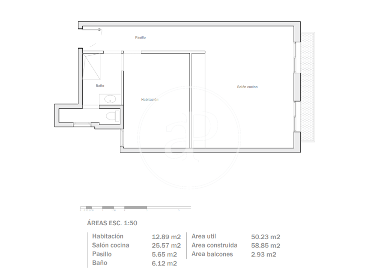 Con una superficie construida -según nota simple- de 63 m2 y 5m2 de balcón, la vivienda presenta una distribución práctica, capaz de conferir a cada instancia amplitud y comodidad.