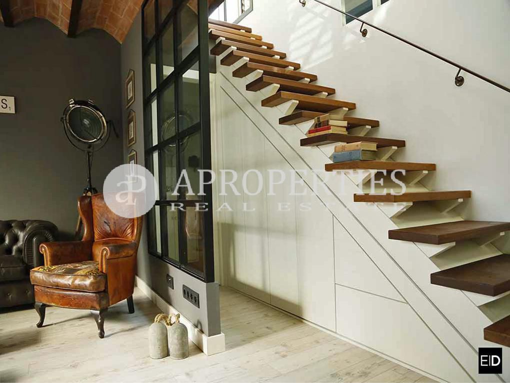 Esta casa ha sido reformada por un interiorista de prestigio con acabados de primera calidad. La casa dispone de una planta baja donde encontramos un salón-comedor de 40m² con acceso a terraza de 15m², una gran cocina con vitroceramica y electrodomésticos paneleados de primeras marcas. También encontramos dos habitaciones dobles con terraza, un baño completo con plato de ducha e iluminación variable, aseo de cortesía, armarios empotrados, mobiliario de madera lacada de alta calidad, mármol, suelos de tarima flotante AC5 y aire acondicionado frio/calor Mitsubishe electric Black Series. En siguiente planta encontramos una gran habitación o espacio polivalente de unos 30m², donde montar un estudio o habitación principal, es muy luminosa y da acceso a gran terraza de 40m² totalmente cubierta por madera de pino tratado para exteriores y escaleras de teka maciza. La vivienda está toda iluminada con carriles de led de bajo consumo y luces graduables, rotura de puente térmico y acústico climalit. La casa esta disponible a partir de 1 de julio de 2018.