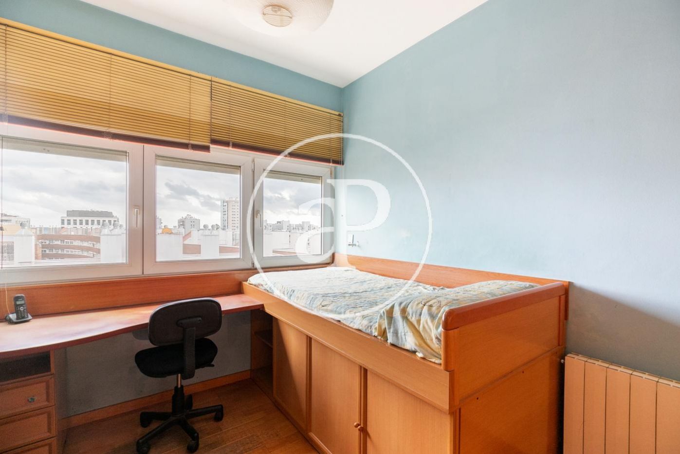 La propiedad se distribuye en zona de día y zona de noche de la siguiente forma: amplio recibidor con armario empotrado, salón de 30m2 con salida a nivel al balcón de 6m2, cocina independiente con zona office y lavadero. En la zona de noche encontramos la master suite de 18m2 con zona de despacho y armarios empotrados, 3 habitaciones dobles, todas ellas con armarios empotrados, de 8,70m2 de superficie cada una y un baño completo que comparten estas 3 habitaciones.