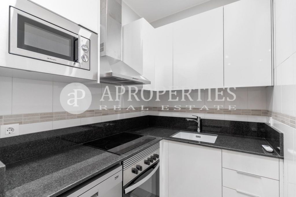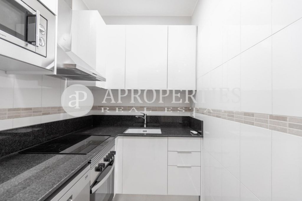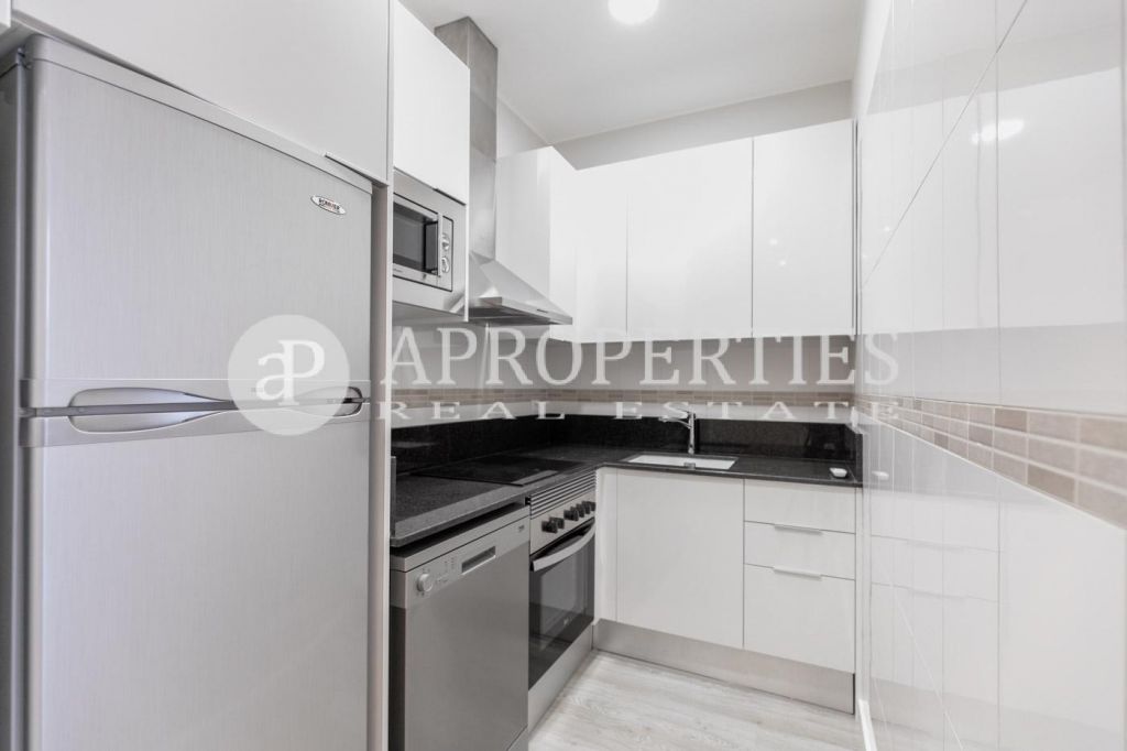 Consta de un salón comedor con balcón a calle, cocina equipada con electrodomésticos, nevera, horno, lavavajillas, campana y lavadora. Tiene dos dormitorios, uno doble con balcón y otro individual e interior y un baño completo con plato de ducha. La vivienda dispone de aire acondicionado frio calor y disponible para 1 noviembre..