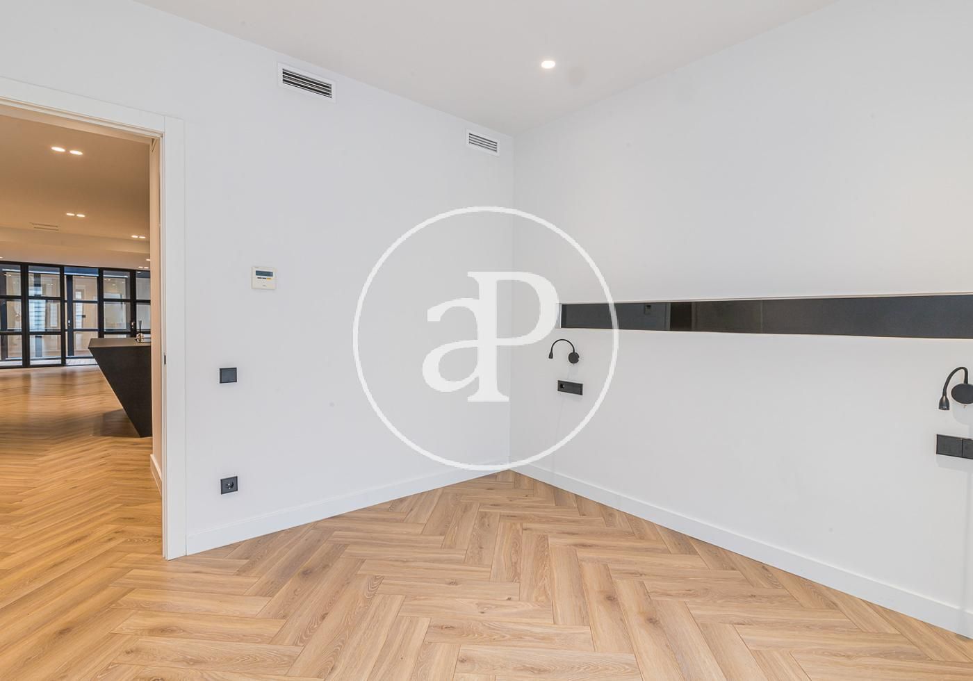 En la planta superior, encontramos una habitación individual que se puede usar como vestidor y otra habitación doble en suite. Todas las estancias disponen de luz natural la gran parte del día. Dispone de aire acondicionado y calefacción por conductos con tres aparatos de climatización que sectorizan los espacios.