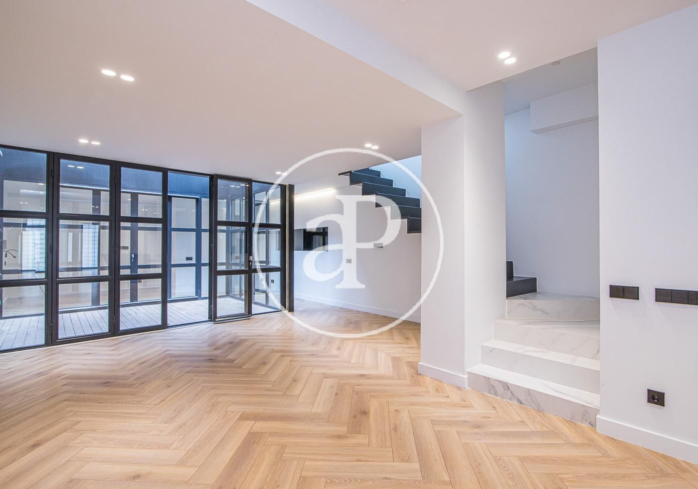 Situado en el corazón de Poblenou en una calle muy tranquila, al lado de La Rambla y muy cerca de la playa de la Mar Bella, encontramos este dúplex de 136 m2 construidos con un patio interior de 10 m2 tipo inglés con entrada a pie de calle.