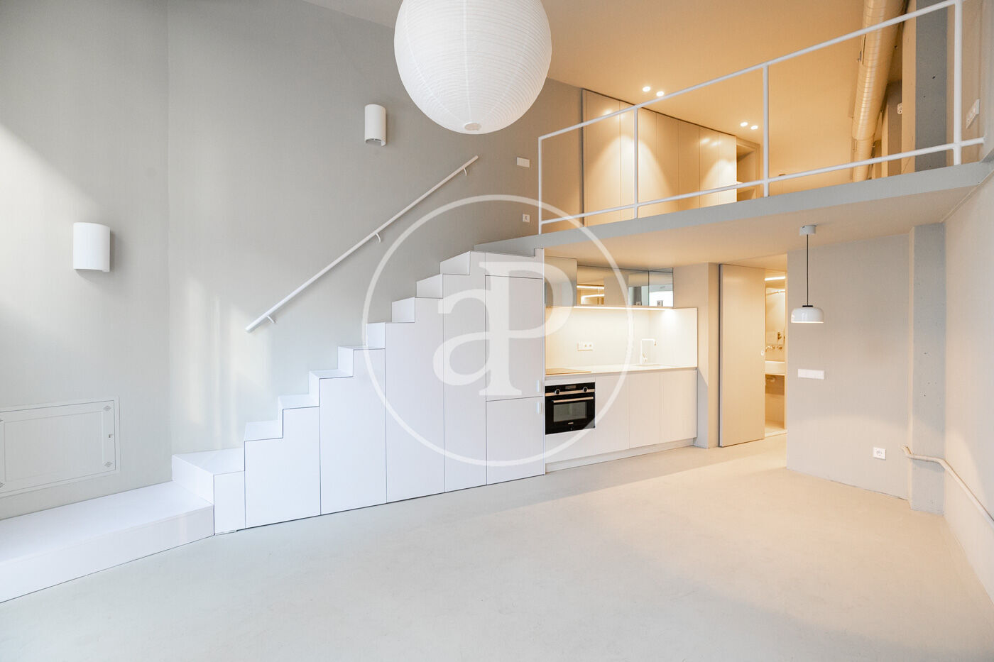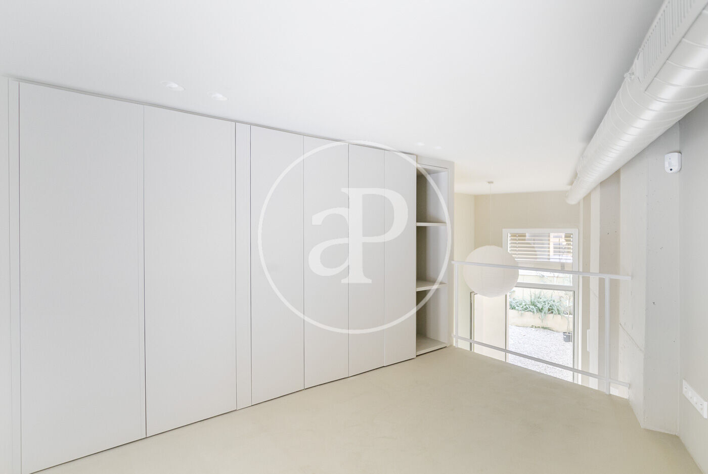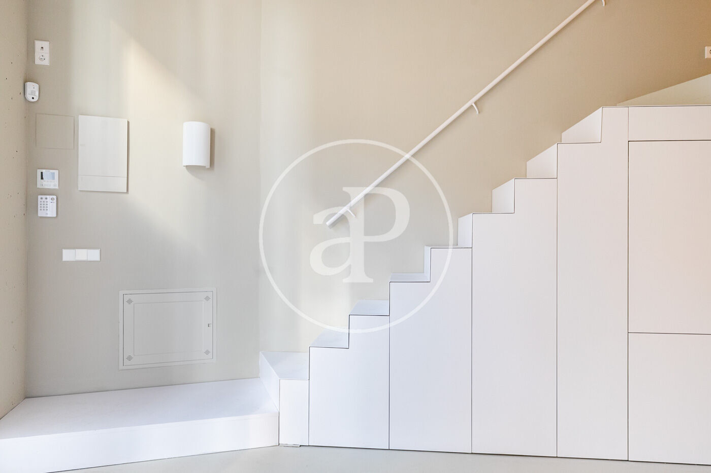 Estudio-local adaptado como vivienda y como espacio de trabajo y reformado por interioristas profesionales.