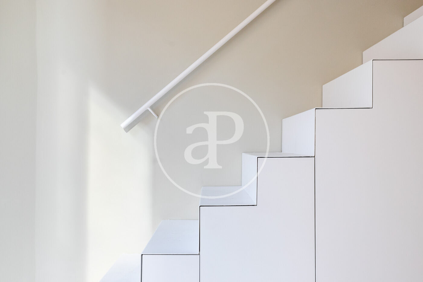 Se ha conseguido un espacio cálido y acogedor, con techos a doble altura en la zona del salón comedor. Destaca la propiedad por sus acabados de alta gama y la gran cantidad de armarios (bajo la escalera, en el altillo y en el pasillo frente al baño).