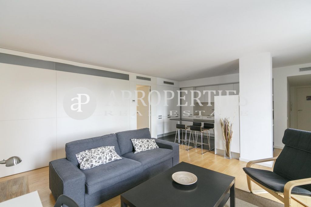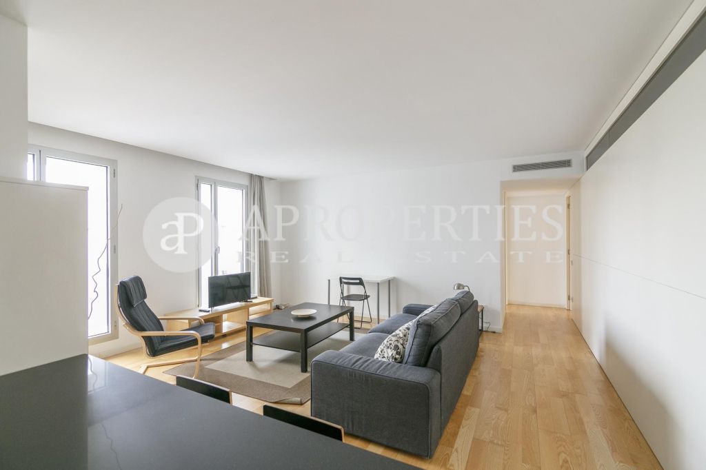 A tan solo 200 metros de la playa y con un fantástico parque junto al mar, con excelentes comunicaciones con el transporte público, encontramos éste increíble apartamento de 100m², muy bien distribuidos con tres habitaciones dobles, una de ellas en suite, con su baño. El piso está totalmente amueblado y equipado. La finca tiene una zona comunitaria con una piscina y vistas al mar. Este apartamento es ideal para disfrutar de su estancia en Barcelona, dispone de una plaza de parking opcional en el mismo edificio y posibilidad de alquiler con muebles a 2500€ o sin muebles a 2.300€.