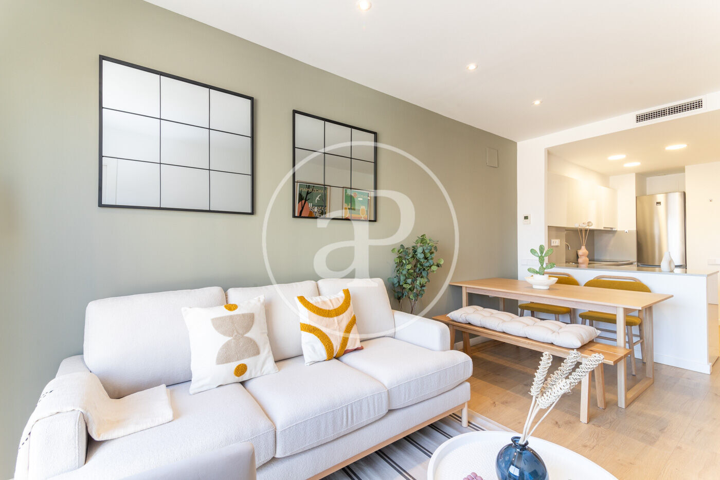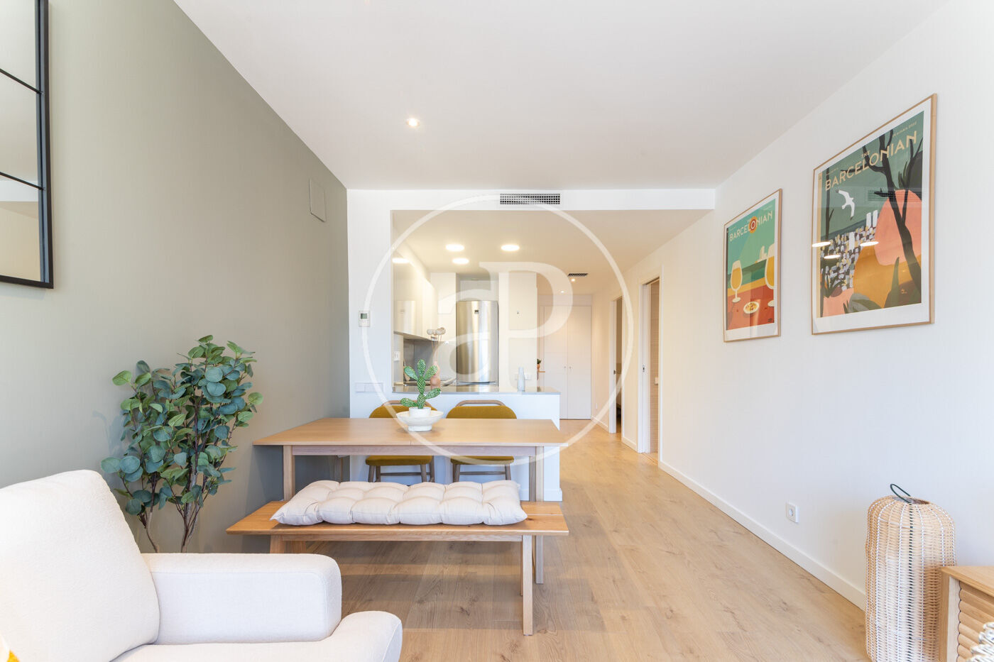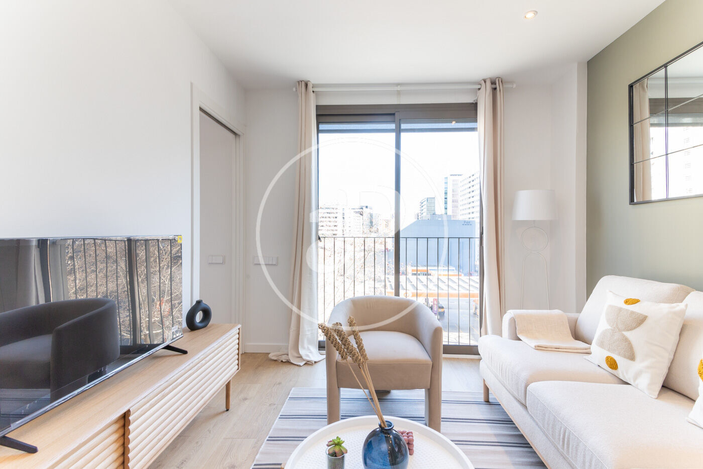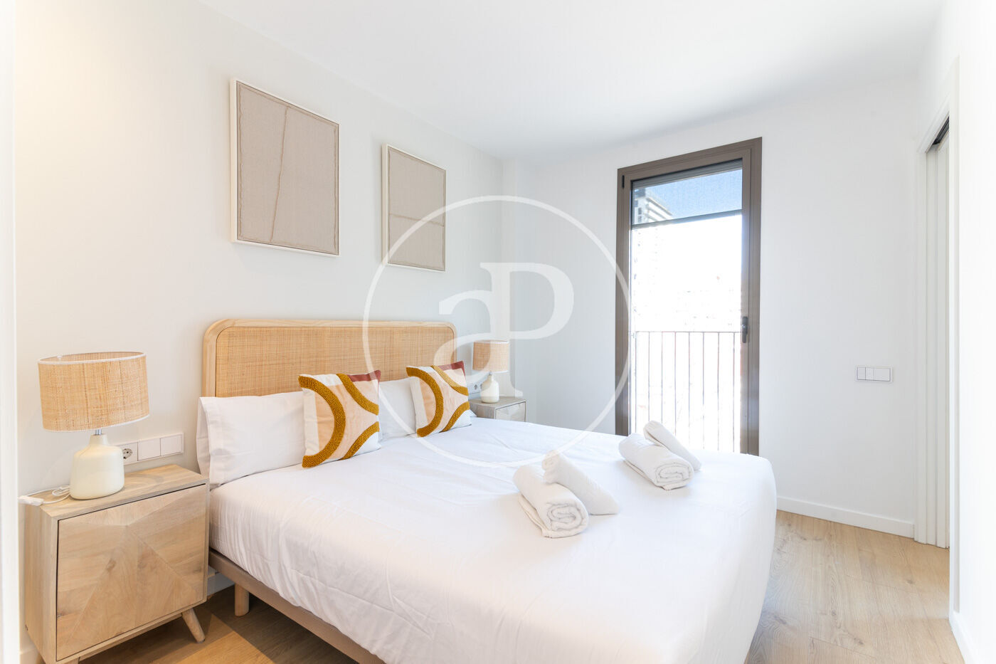 Ubicado en el barrio de Poblenou, muy cerca de la playa, rodeado de comercios, restaurantes, museos, y muy bien conectado con el transporte público, en una finca de obra nueva, encontramos este luminoso piso exterior totalmente amueblado y equipado con balcón de 60m².