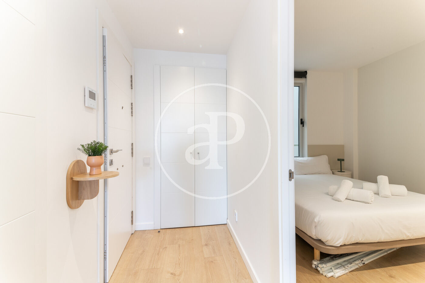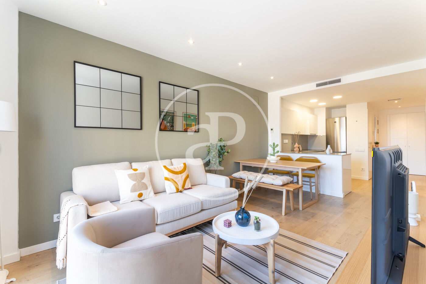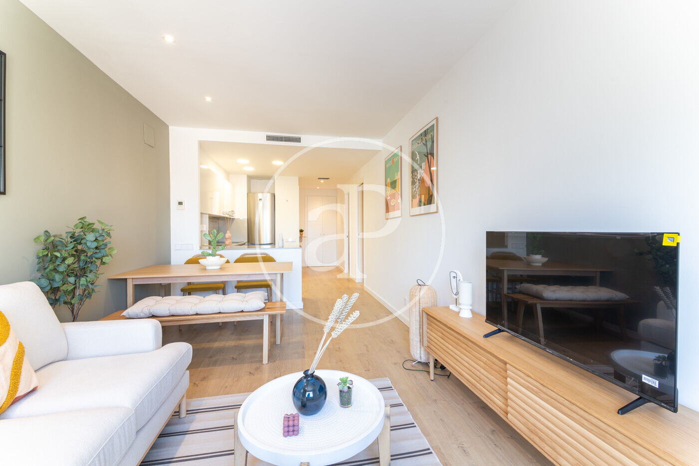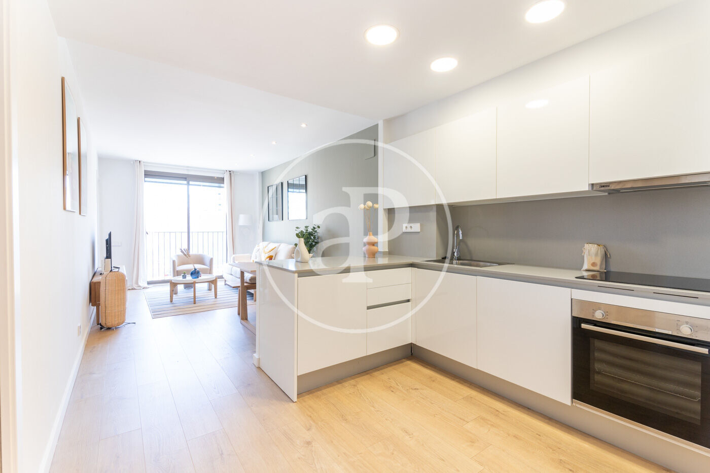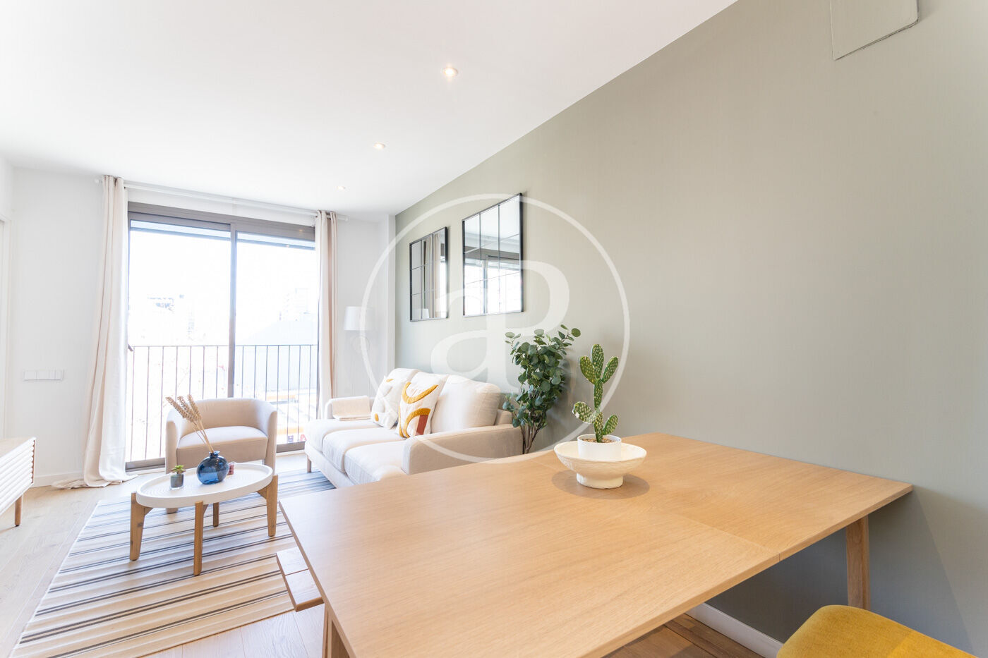 Ubicado en el barrio de Poblenou, muy cerca de la playa, rodeado de comercios, restaurantes, museos, y muy bien conectado con el transporte público, en una finca de obra nueva, encontramos este luminoso piso exterior totalmente amueblado y equipado con balcón de 60m².