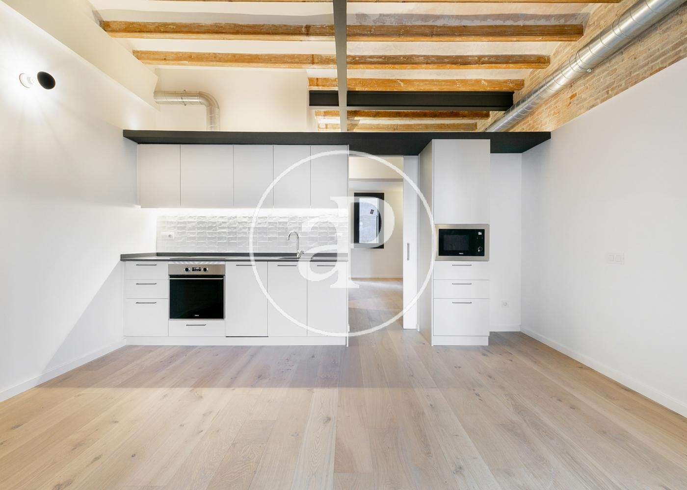 Todos los acabados son de alta calidad. Se han mantenido los elementos originales como las vigas de madera y ladrillo visto recuperado. Los suelos son de parqué de roble, ventanas climalit, calefacción y aire por bomba de calor, instalaciones eléctricas nueva y cocina completamente equipada.
