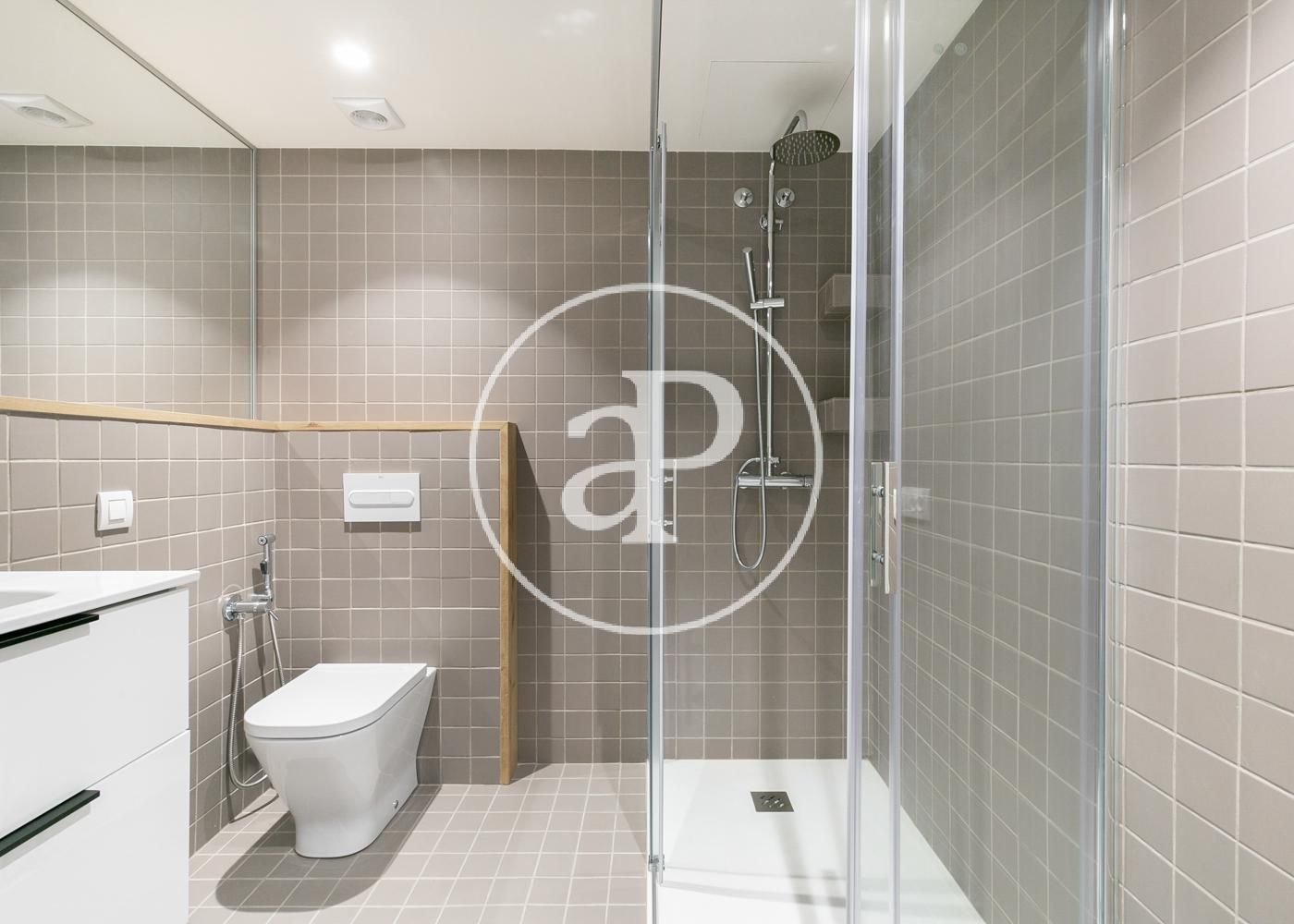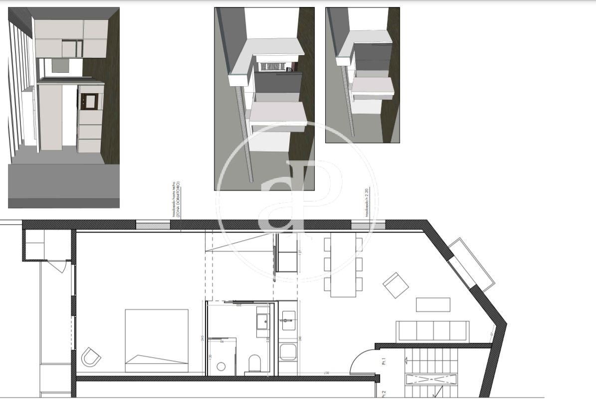 La propiedad de 64m2 construidos está formada por un gran dormitorio en suite, cocina, comedor y salón abierto y un baño completo. Todas las estancias son exteriores gracias a la doble orientación este-oeste. Se completa con un balcón orientado a calle y otro, con espacio suficiente para poner una mesa y dos sillas, orientado a patio de manzana. Hay también una zona de aguas donde se encuentra el termo de agua caliente y la máquina del aire acondicionado.