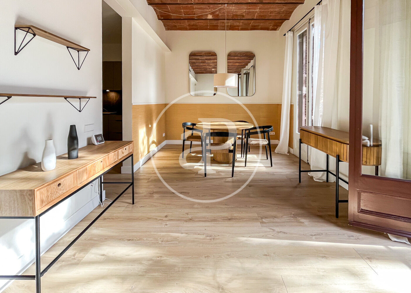 La vivienda tiene mucha luz natural, está amueblada y totalmente reformada, destacando elementos como el techo de la "volta catalana", suelos de parqué o electrodomésticos de alta gama. La climatización trabaja por sistema centralizado, aire acondicionado y bomba de calor.