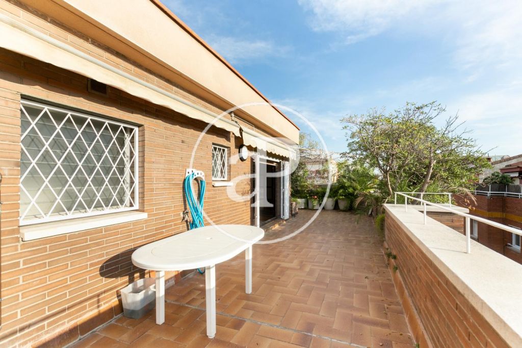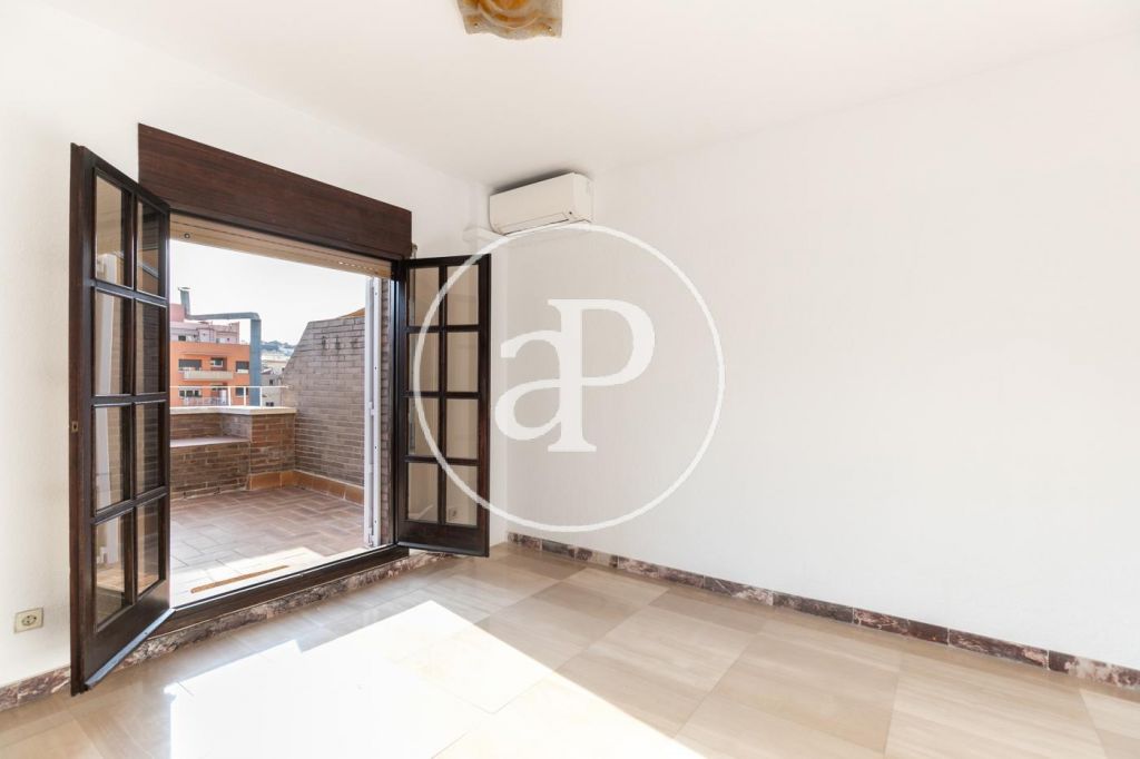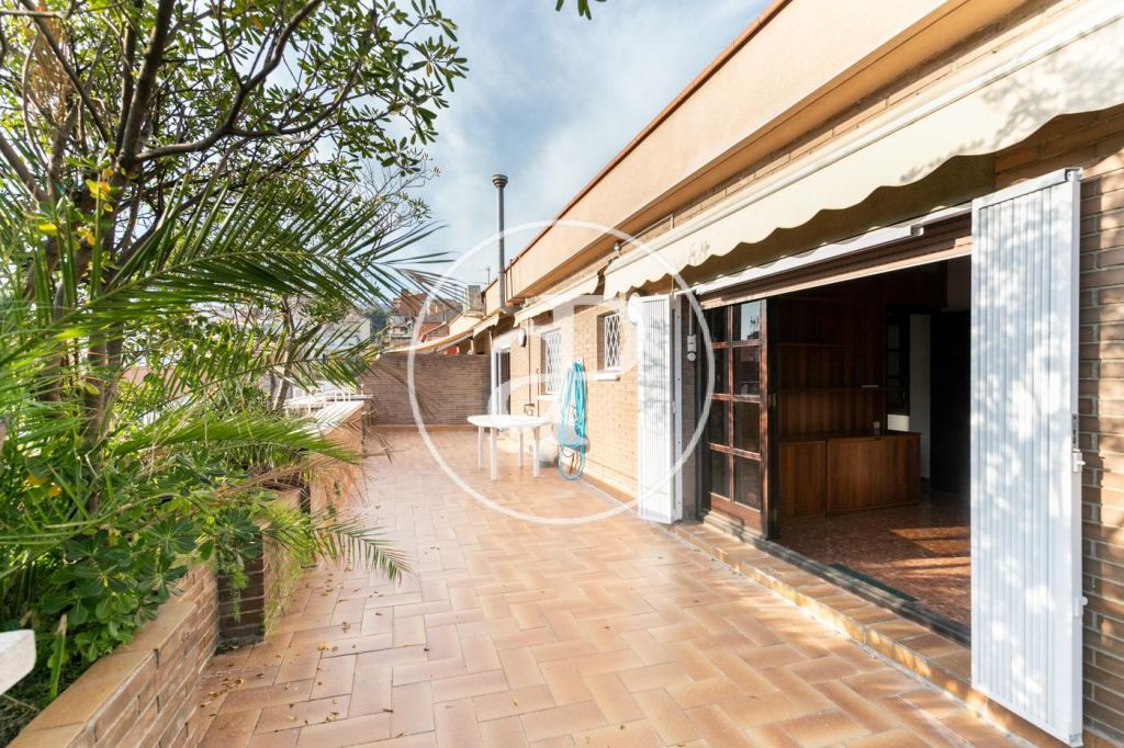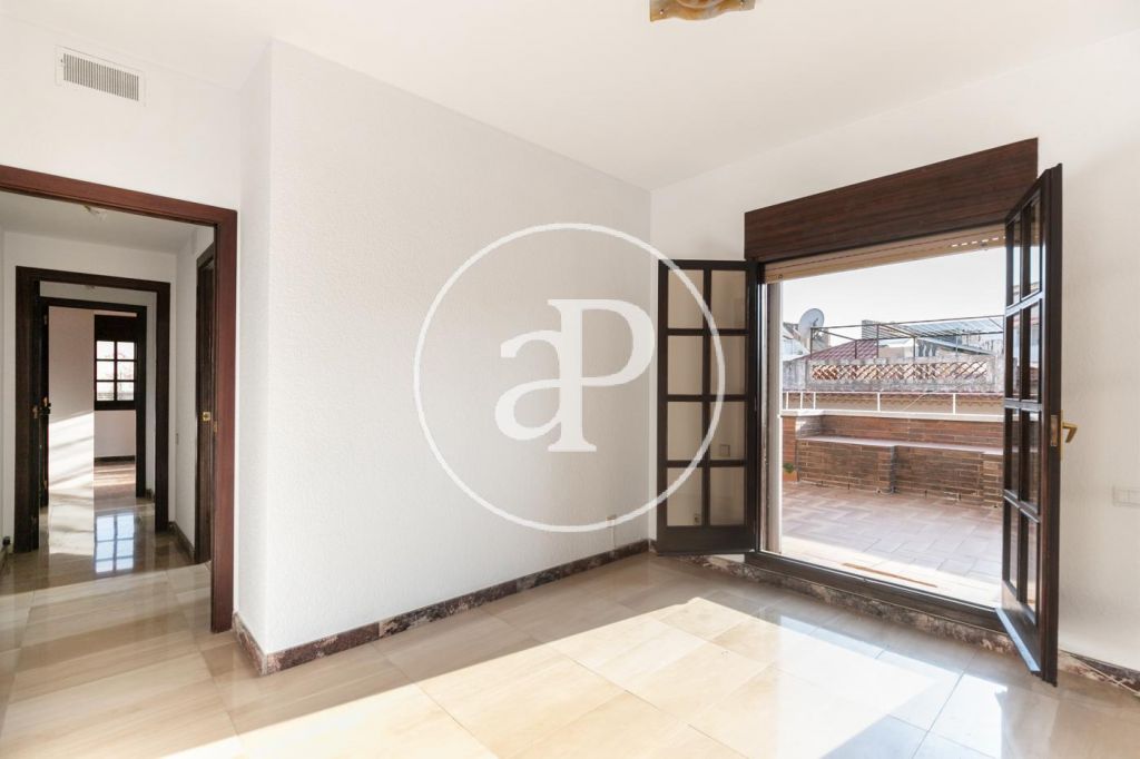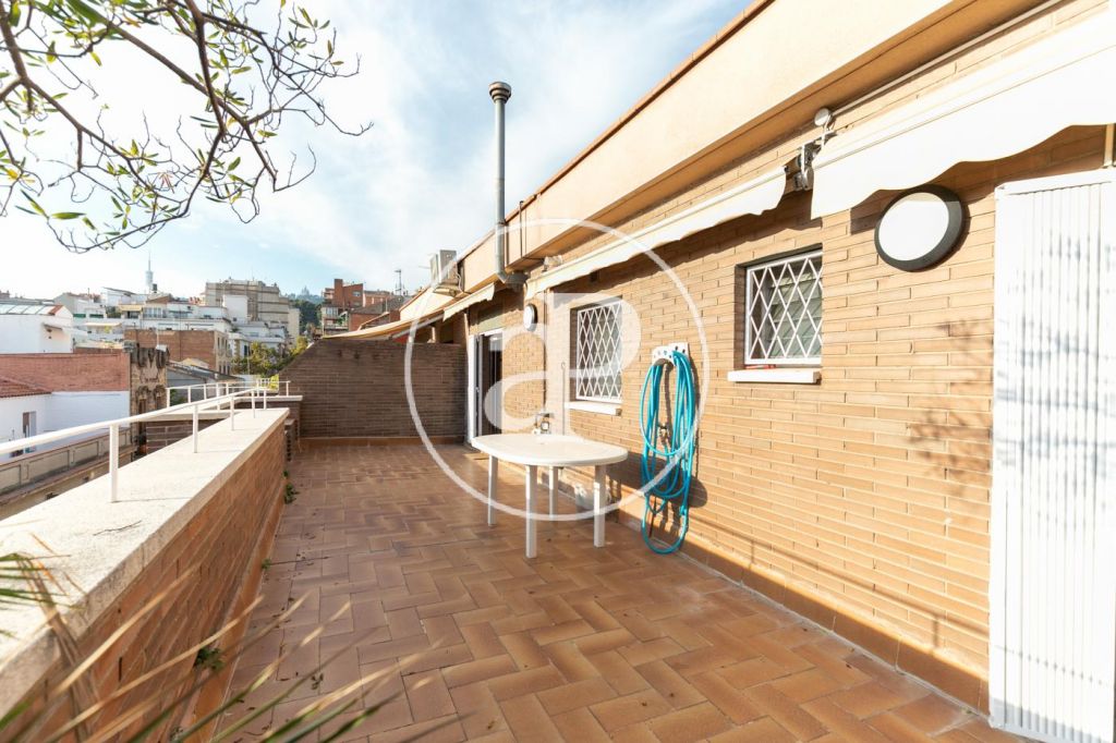 Ático sin amueblar en calle Francoli, en la parte alta de Gracia junto al Putget i farró, en este calle sin salida con una enorme tranquilidad y relax en el centro de Barcelona. Este piso de 120 metros cuadrado y 60 metros de terraza totalmente exterior es una ocasión única. Cuenta con una habitación doble exterior con salida directa a la terraza y sin armarios empotrados, las otras tres habitaciones medianas interiores tienen armarios empotrados. Cuenta con dos baños completos (ambos con bañera) y un salón amplio y luminoso totalmente exterior con salida directa a la terraza Cuenta con aire acondicionado y calefacción mediante split. La finca cuenta con ascensor y incluye en el precio una plaza de parking grande
