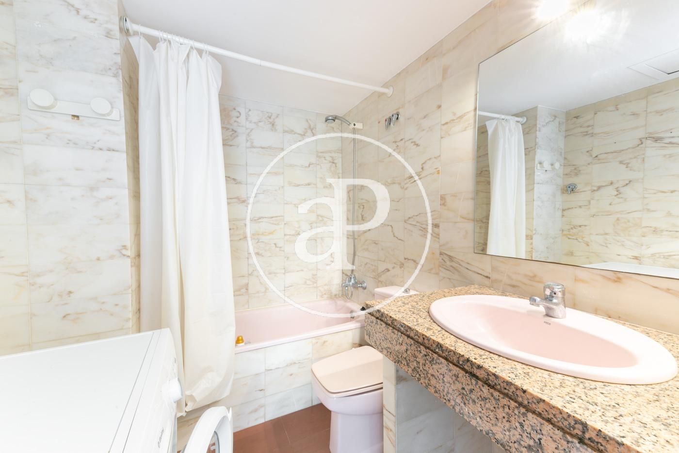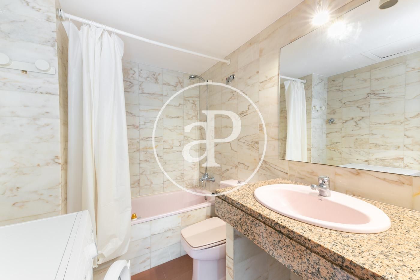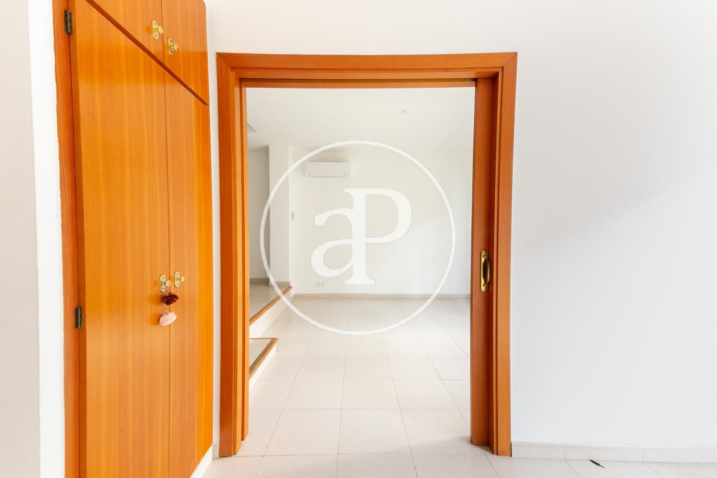 Aproperties en exclusiva tiene el agrado de presentaros este renovado ático esquinero. Comenzamos nuestro recorrido atravesando el corredor, que nos conduce tanto a la zona de día como la de noche. Comencemos por la de día: un amplio salón-comedor con cocina abierta, completamente renovada hace tres años os sorprenderá gratamente. La cocina está equipada con todo lo necesario para los más exigentes sibaritas, se integra perfectamente al salón y ofrece vistas al Parc Central de Sant Cugat. Mientras cocinas, puedes compartir el momento con tu familia o invitados, que pueden sentarse en la barra o en la mesa. A pesar de tratarse de un espacio abierto, el salón distingue claramente tres ambientes: la zona de cocina, la zona de comedor y la zona de estar. Desde aquí se accede directamente a una amplia terraza, actualmente equipada con un sector de relax, un comedor exterior y si, puedes hacer aquí las mejores barbacoas. El piso cuenta con tres habitaciones. La principal, en suite, tiene salida directa a la terraza. La segunda, individual pero amplia, también da acceso a la terraza. La tercera habitación es muy espaciosa, de las más grandes que hemos tenido el agrado de comercializar. Todas las habitaciones disponen de armarios empotrados, vestidos y renovados recientemente. La propiedad se completa con una gran plaza de parking y un trastero. La comunidad ofrece zona de piscina y un parque infantil, ideal para los más pequeños de la casa. Ven a visitarla y enamórate de tu nuevo hogar!!!