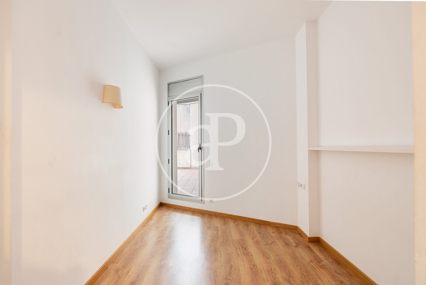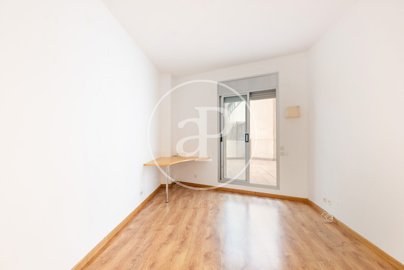 En la codiciada zona de la Misió, muy cerca de las Ramblas, encontramos este ático de 145 m² que combina amplitud, luz natural y un diseño moderno con toques cálidos. Dispone de una terraza de 10 m² con vistas despejadas, perfecta para disfrutar del clima mediterráneo.  El salón-comedor, amplio y luminoso con salida directa a la terraza destaca por su estilo contemporáneo y acogedor, con una cuidada selección de muebles y detalles decorativos que aportan personalidad, sofás en tonos azules, mesa de centro en madera natural y piezas únicas que crean un ambiente elegante y relajado. La iluminación también juega un papel clave, con lámparas de diseño que aportan calidez y carácter. La cocina abierta es minimalista y funcional, con muebles en blanco, electrodomésticos integrados y una isla central en madera que añade contraste y sofisticación. Es un espacio pensado para disfrutar tanto del día a día como de reuniones informales.  Las habitaciones mantienen la misma línea estética: la principal con baño en suitte con bañera y armarios empotrados, combina tonos neutros con una pared en gris oscuro que aporta profundidad, mientras que la segunda habitación ofrece un ambiente versátil, ideal como dormitorio o despacho, con detalles en fibras naturales y textiles coloridos. Tiene otro baño completo con plato de ducha.   Los suelos de parquet oscuro, las ventanas de gran formato y la cuidada iluminación refuerzan la sensación de confort y estilo en todo el piso. Tiene aire acondicionado por splits en todas las estancias.  Incluye plaza de parking y trastero y se alquila completamente amueblado y equipado. Además, los gastos de agua, comunidad e IBI están incluidos en el precio, lo que lo convierte en una opción cómoda y sin sorpresas.  Mascotas a consultar  ¿Te imaginas vivir aquí? Esperamos tu llamada