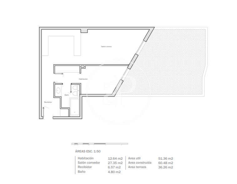 La vivienda, muy práctica, dispone de un luminoso salón-comedor con cocina integrada y acceso directo a una amplia terraza. Cuenta además con un dormitorio doble en suite, equipado con armarios empotrados.