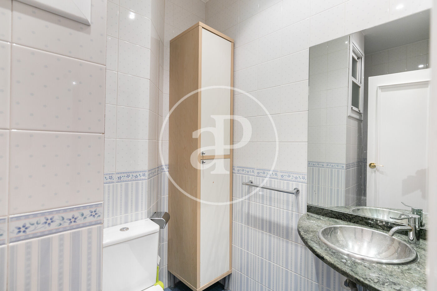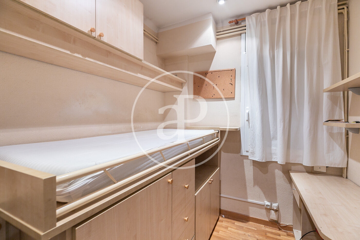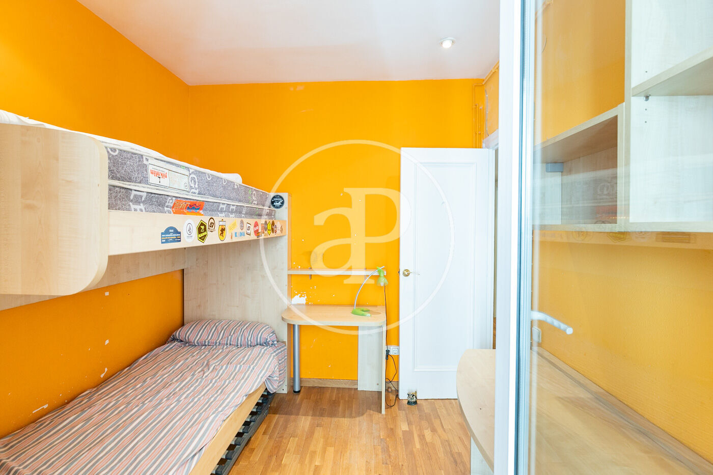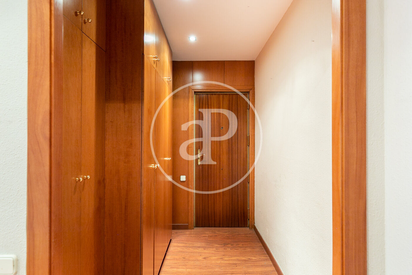 Al entrar, encontramos del lado derecho un salón-comedor amplio y luminoso orientado a General Mitre. Del lado izquierdo, un pasillo que conduce a la cocina con office y zona de lavadero. A continuación, los cuatro dormitorios, dos de ellos individuales e interiores y dos dobles exteriores. Desde uno de los dormitorios se accede a la terraza muy agradable. La vivienda cuenta con dos baños completos, uno con ducha y el otro con bañera.