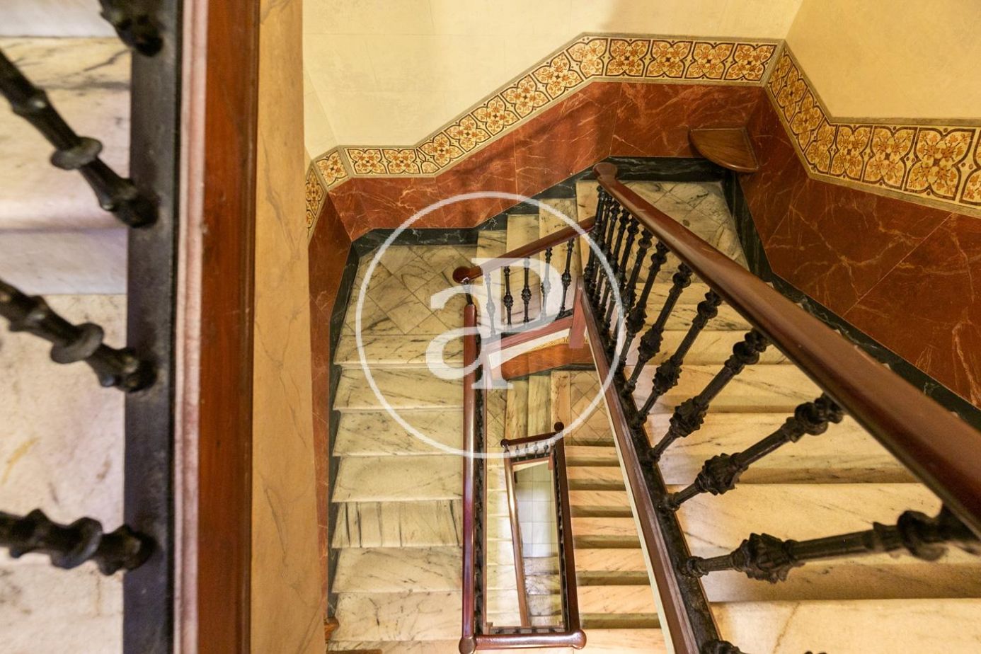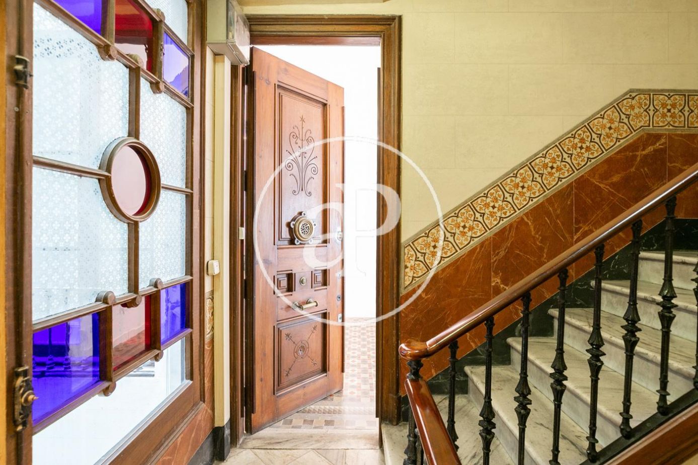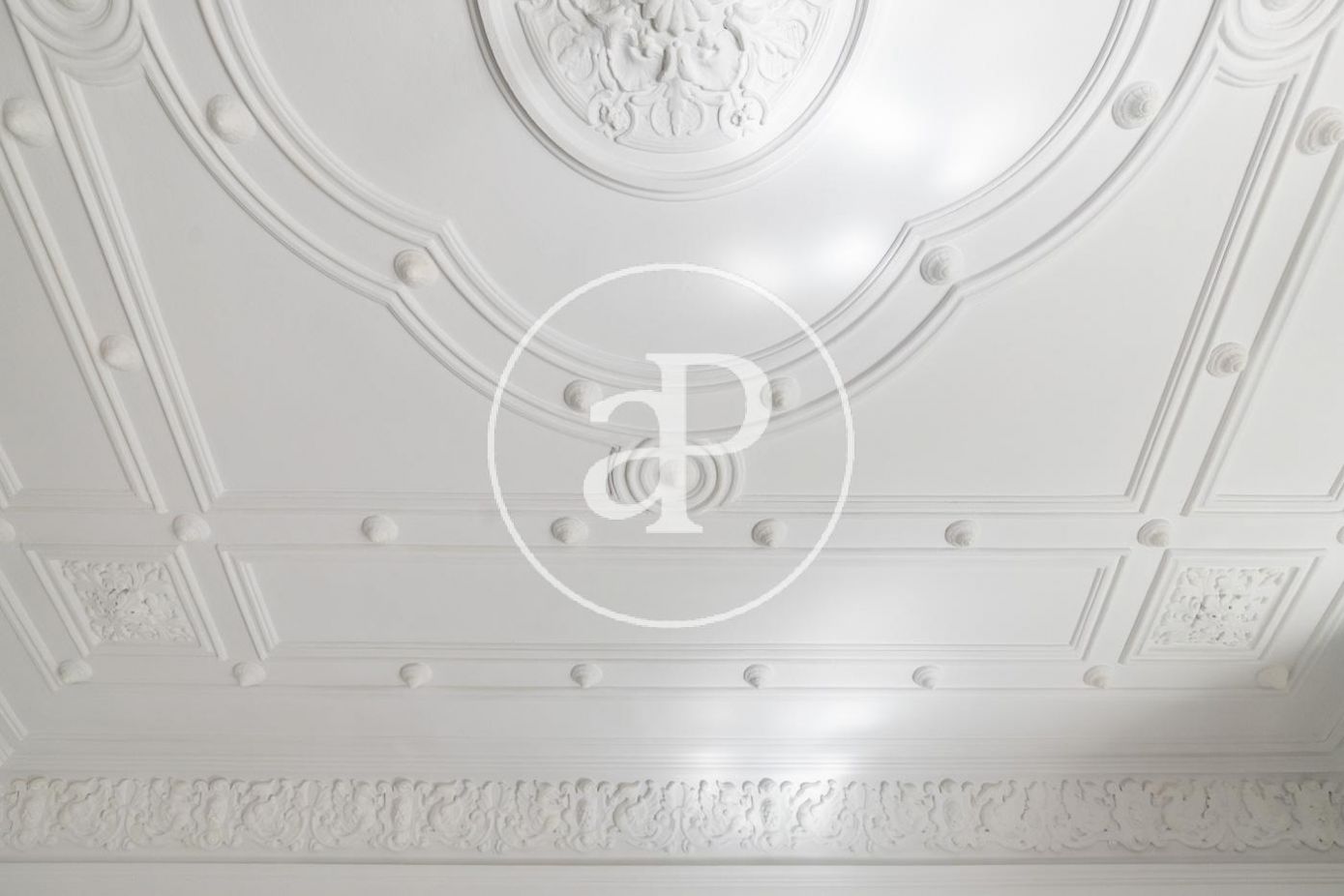 Solo entrar en el piso nos damos cuenta de que es una vivienda única. Rehabilitada en su totalidad con muchísimo gusto y gran atención a los detalles aúna el modernismo y modernidad en perfecta armonía. Destaca por sus elementos de la época perfectamente restaurados como los techos altos artesonados con molduras, suelos hidráulicos y carpintería original.