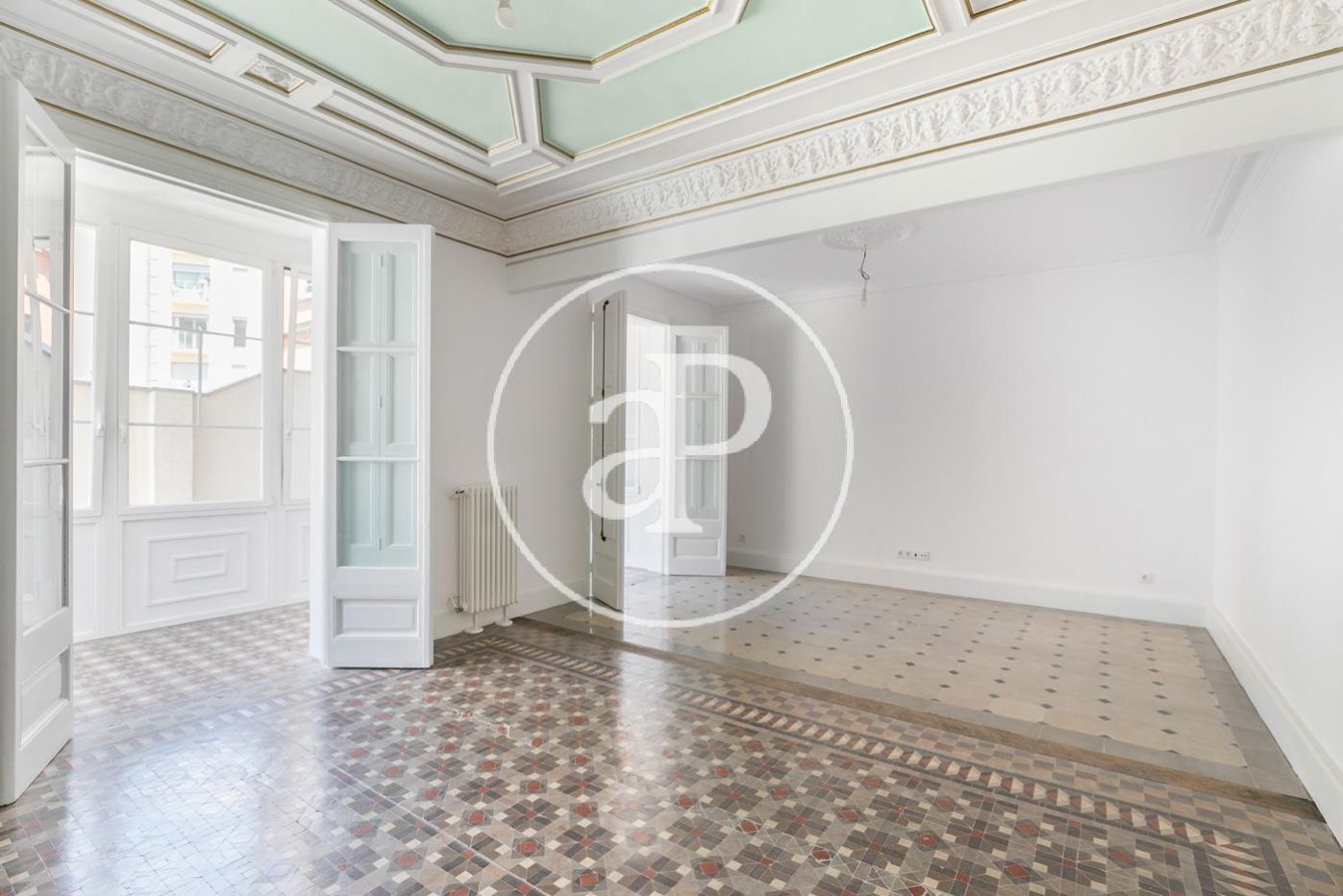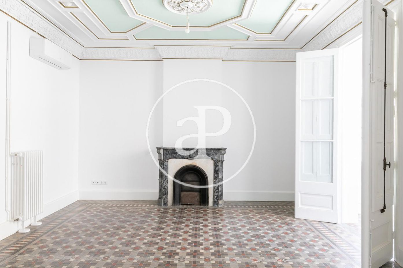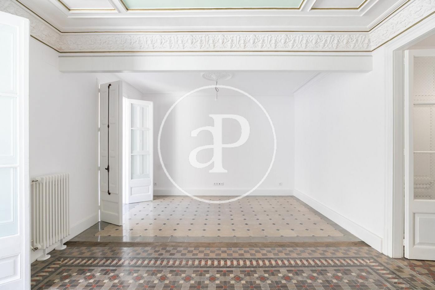 Solo entrar en el piso nos damos cuenta de que es una vivienda única. Rehabilitada en su totalidad con muchísimo gusto y gran atención a los detalles aúna el modernismo y modernidad en perfecta armonía. Destaca por sus elementos de la época perfectamente restaurados como los techos altos artesonados con molduras, suelos hidráulicos y carpintería original.