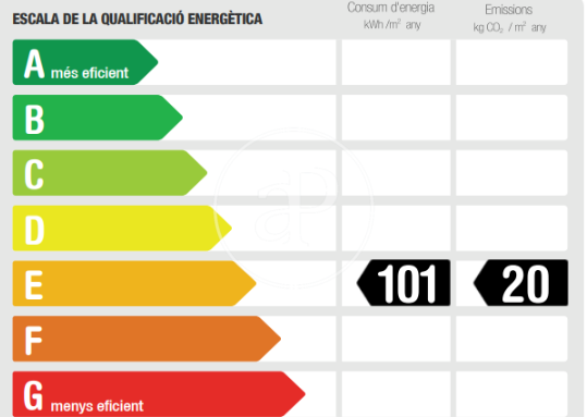 Más eficiente Menos eficie Calificación energética Consumo energía Kw h/m² año Emisiones Co/m² año 101.00 20.00