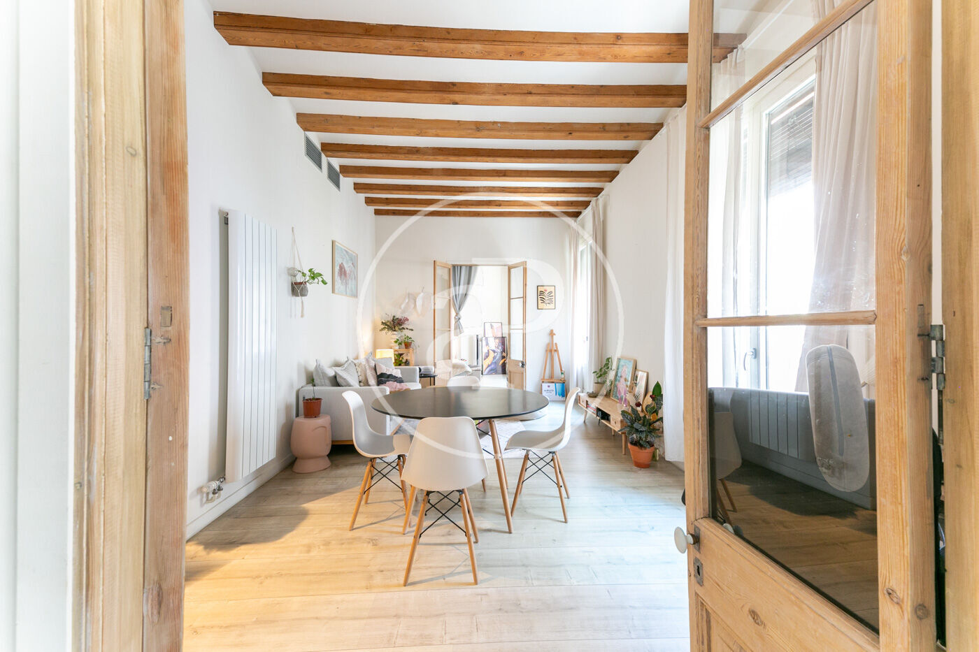 La propiedad, reformada de forma impecable en 2017, combina elementos originales como los techos de voltas catalanas con las vigas de madera, la carpintería interior de madera finamente restaurada y materiales modernos, para ofrecer a quien la habita espacios de vida confortables y acogedores en una ubicación privilegiada.