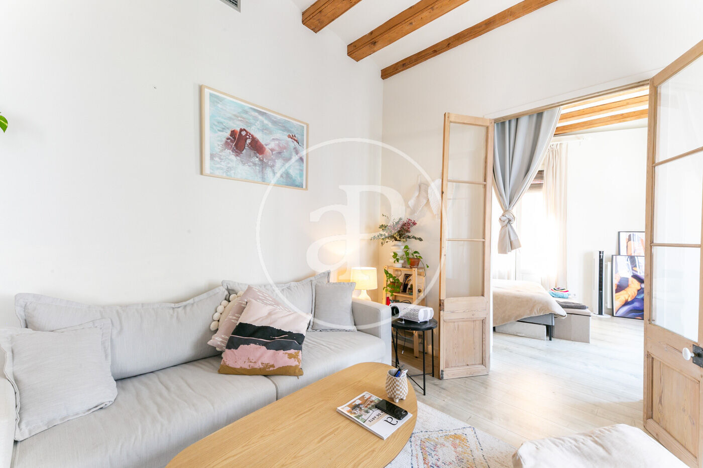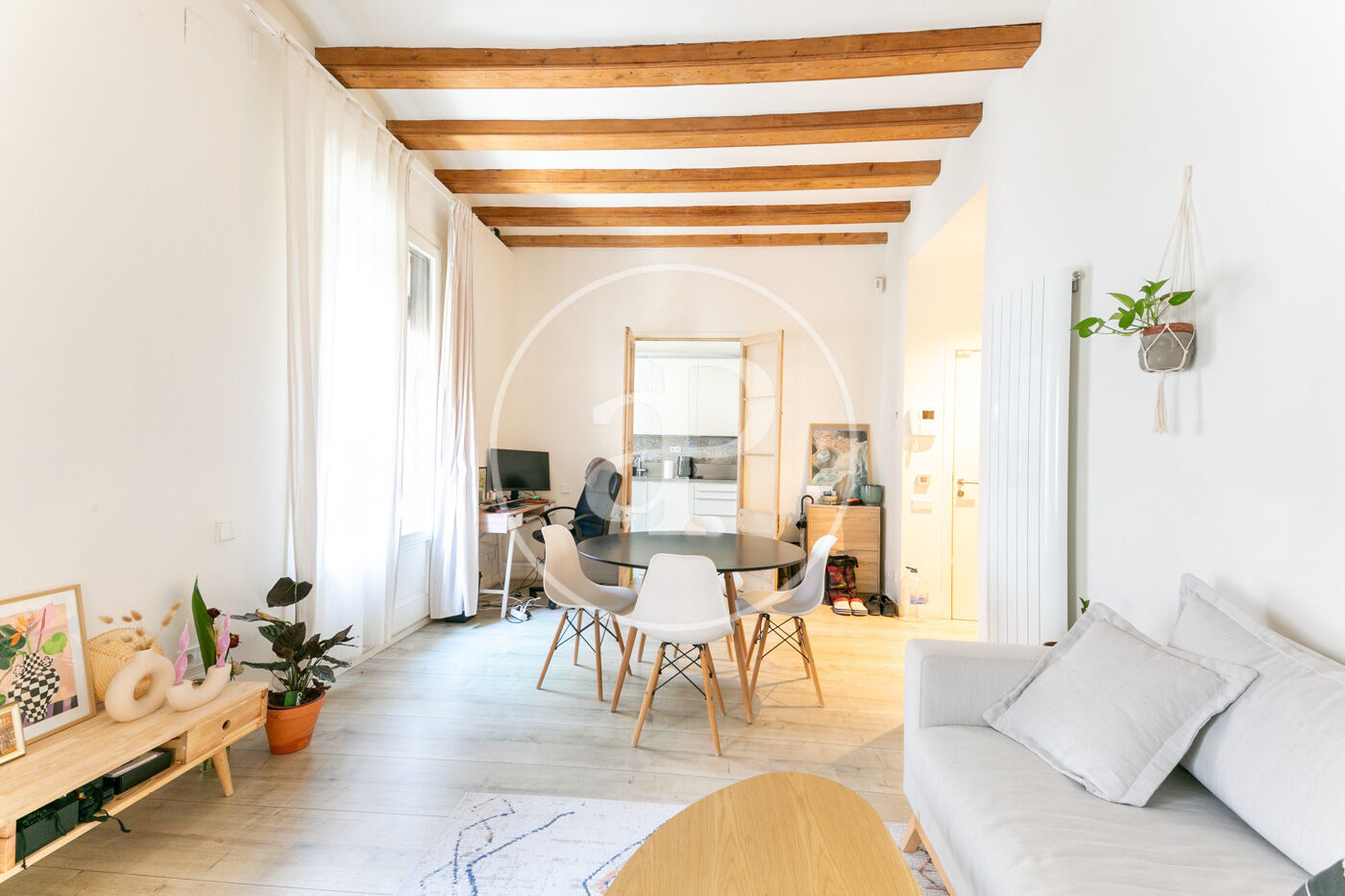 Situado en la bonita finca reformada en la bella y tranquila calle Junta de Comerç, a pocos pasos del Teatre Liceu, de la Boquería y de todo tipo de centros de arte y cultura, servicios, comercios, bares, restaurante y transporte, presentamos este atractivo piso de 63m2 de superficie, luminoso y en muy buenas condiciones.