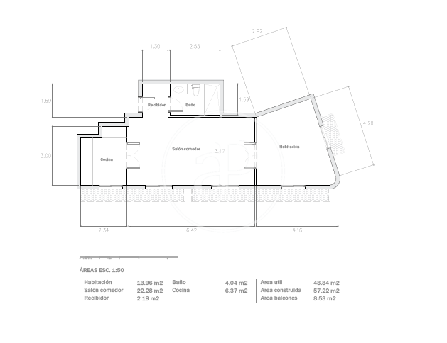 El piso contas de una amplia sala de estar, con dos amplios ventanales, una cocina independiente, una gran habitación doble esquinera, un vestíbulo de entrada y un amplio baño completo. Cada estancia tiene salida a balcón para disfrutar del clima de la ciudad y de la óptima orientación de la vivienda.