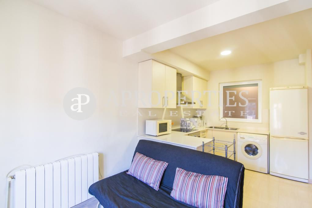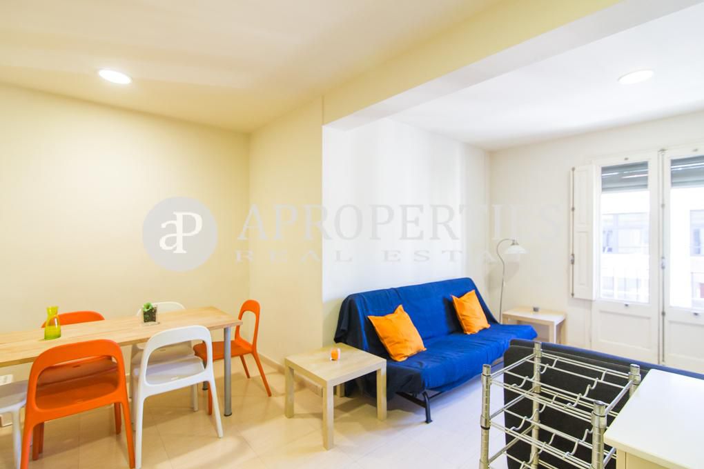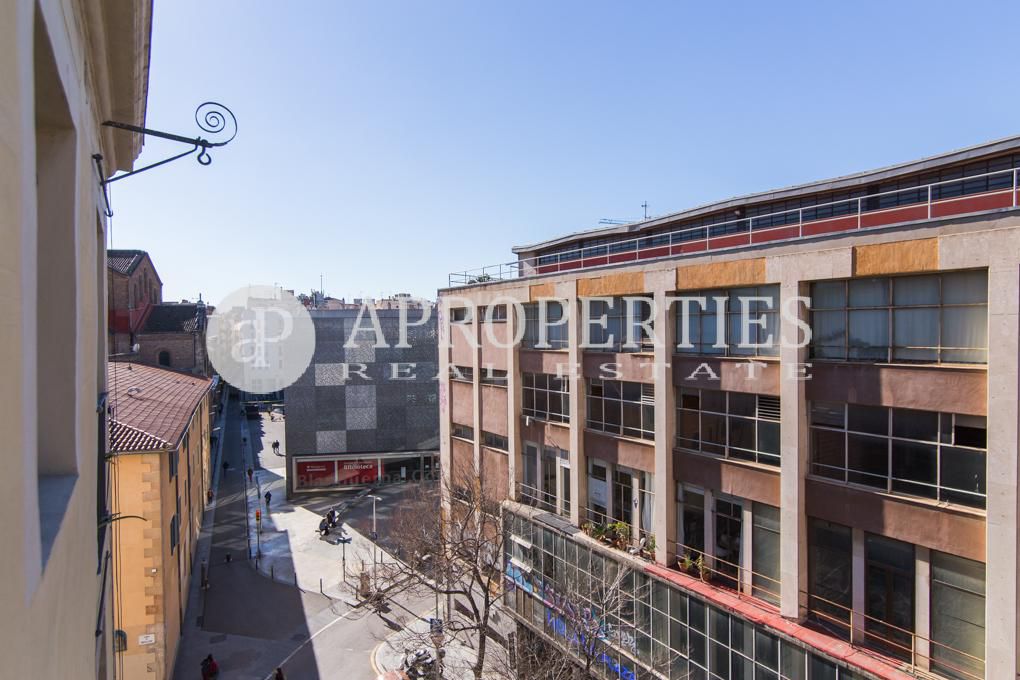 Muy cerca del museo de arte contemporáneo MNAC, de la ronda universidad y a un paso de Las Ramblas, nos encontramos con una vivienda de aproximadamente unos 65m2 con ascensor y con bonitas vistas. El piso es exterior y está totalmente amueblado, consta de un salón-comedor con una cocina abierta equipada y de dos habitaciones cada una con su baño. El piso tiene calefacción y aire acondicionado.