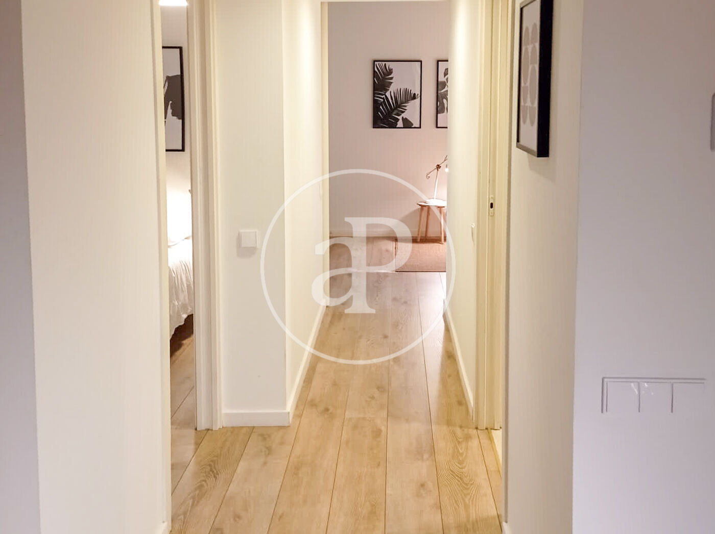 La zona noche cuenta con dos habitaciones dobles y un baño completo. Techos antiguos de bóveda catalana. Dispone de ventanas de doble cristal y aire acondicionado frío/caliente por conducto.