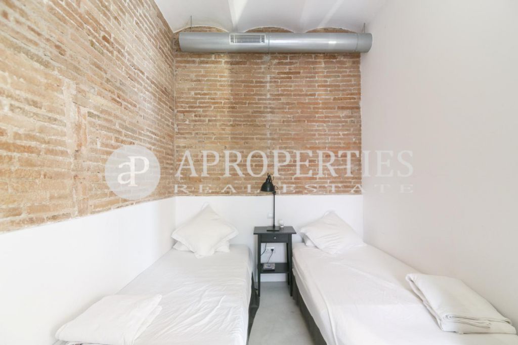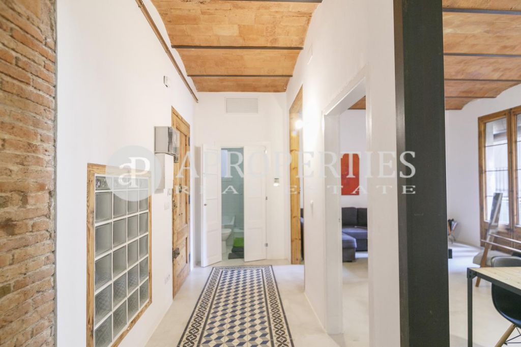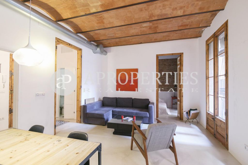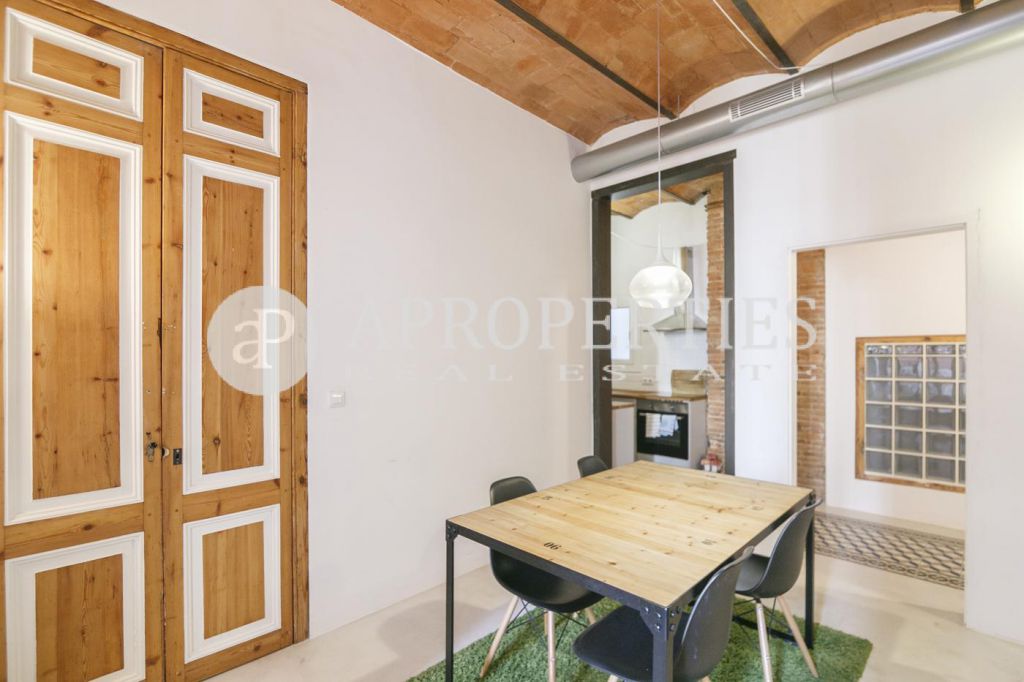 En la zona de Ciutat Vella, con vistas al monasterio de Sant Pau del Camp, encontramos este encantador piso amueblado y equipado de 78m2 muy luminoso y con varios balcones que dan a una calle tranquila. Consta de un amplio salón-comedor de unos 20m2, una cocina semi-abierta, dos habitaciones, una doble y otra individual, todas con armarios y un baño completo, con bañera y ducha. Reformado con mucho encanto, el piso conserva las características de un piso de época, como las carpinterías de madera, techos de volta catalana y paredes de ladrillo visto, combinadas con el mejor del diseño moderno. Dispone de aire frío y caliente por ductos. El edificio no dispone de ascensor, pero la propiedad está en una primera planta. Disponible desde Septiembre por un periodo minimo de un año. El precio incluye todos los gastos de suministros.