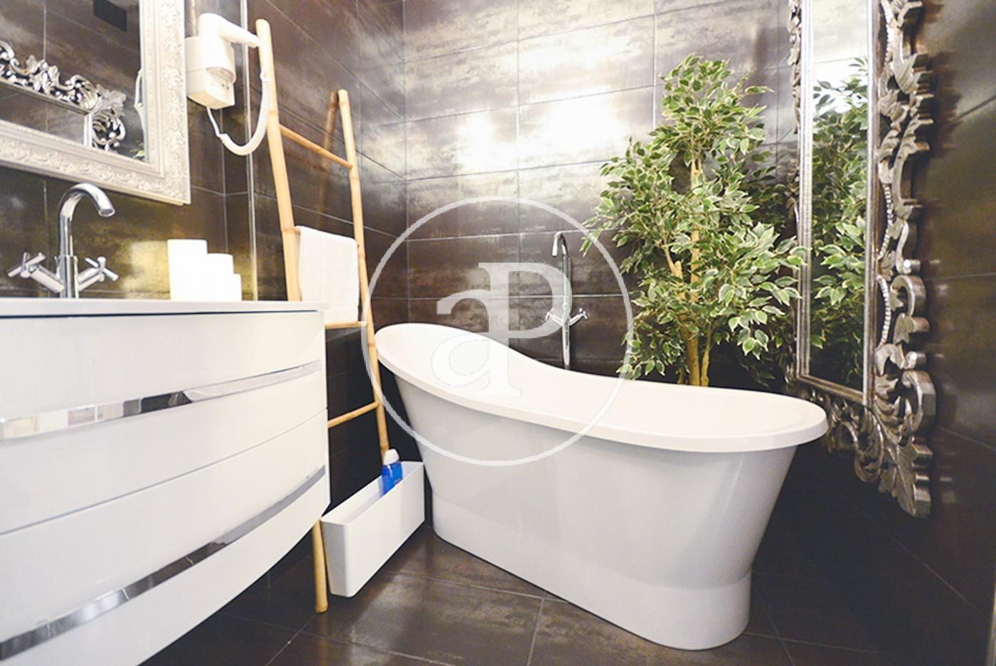 Lujoso ático dúplex amueblado de 180 m2 con una terraza privada de 30 m2 y vistas a la emblemática calle Passeig de Gracia, en una finca totalmente restaurada con un gusto exquisito, cuidando hasta el más mínimo detalle. En la planta inferior, que es zona de día, se encuentra un precioso salón comedor con muebles de diseño y con acceso a la terraza, una cocina totalmente equipada con electrodomésticos de calidad y todos los utensilios de cocina para cocinar desde el primer día y un baño completo. En la planta superior hallamos dos habitaciones dobles en suite y un despacho. La vivienda ha sido diseñada y decorada por el codiciado arquitecto de interiores Lázaro Rosa Violán.  Todas las estancias están completamente amuebladas y listas para entrar solo con el equipaje.  El alquiler incluye servicios mantenimiento, limpieza una vez por semana con cambio de sábanas y toallas, luz, agua, AACC, calefacción, TV SAT y conexión a internet de alta velocidad, tanto en su apartamento, como en toda la finca. En la azotea del edificio se encuentra una impresionante terraza exterior con piscina, gimnasio, sauna, zona con proyector para cine y demás programas, barbacoa, todo reservable para eventos privados. Además, la finca dispone servicio de conserjería de 07:00 a 23:00, código de seguridad de accesos, zona de parking para bicicletas y trastero. La finalidad del contrato es temporal. "La realidad del mobiliario puede no corresponder exactamente con las fotografías mostradas en este anuncio".* En cumplimiento de la Ley 12/2023 y la Llei 18/2007 informamos que:Índice de R.P.LL: 24,00 € / m2 Respecto a la presente propiedad no existe certificado informativo estatal de referencia de precios de alquilerRenta último contrato de arrendamiento: 15.000,00 €Este propietario ostenta la condición de gran tenedor.La presente propiedad tiene la consideración de suntuaria por razón de superficie y/o renta, y por ello de conformidad a la LAU no es de aplicación el índice estatal de referencia de precios de alquiler.