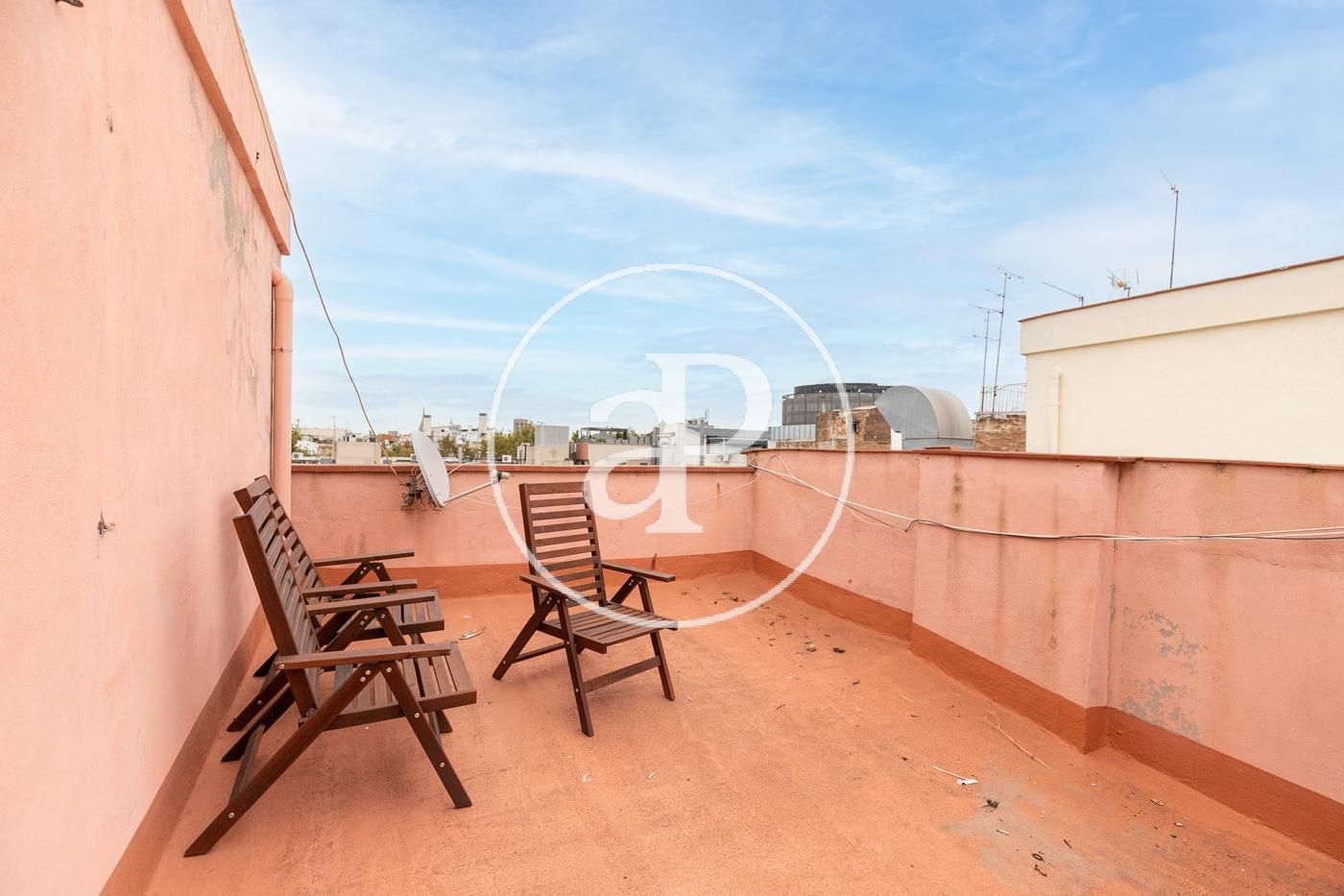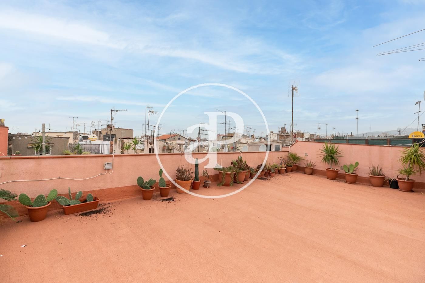 El piso se encuentra en una tercera planta real en una finca de 1860 SIN ASCENSOR, rehabilitada y en muy buen estado de conservación, con terrado comunitario practicable con estupendas vistas a la ciudad de Barcelona y a la montaña de Montjuic.